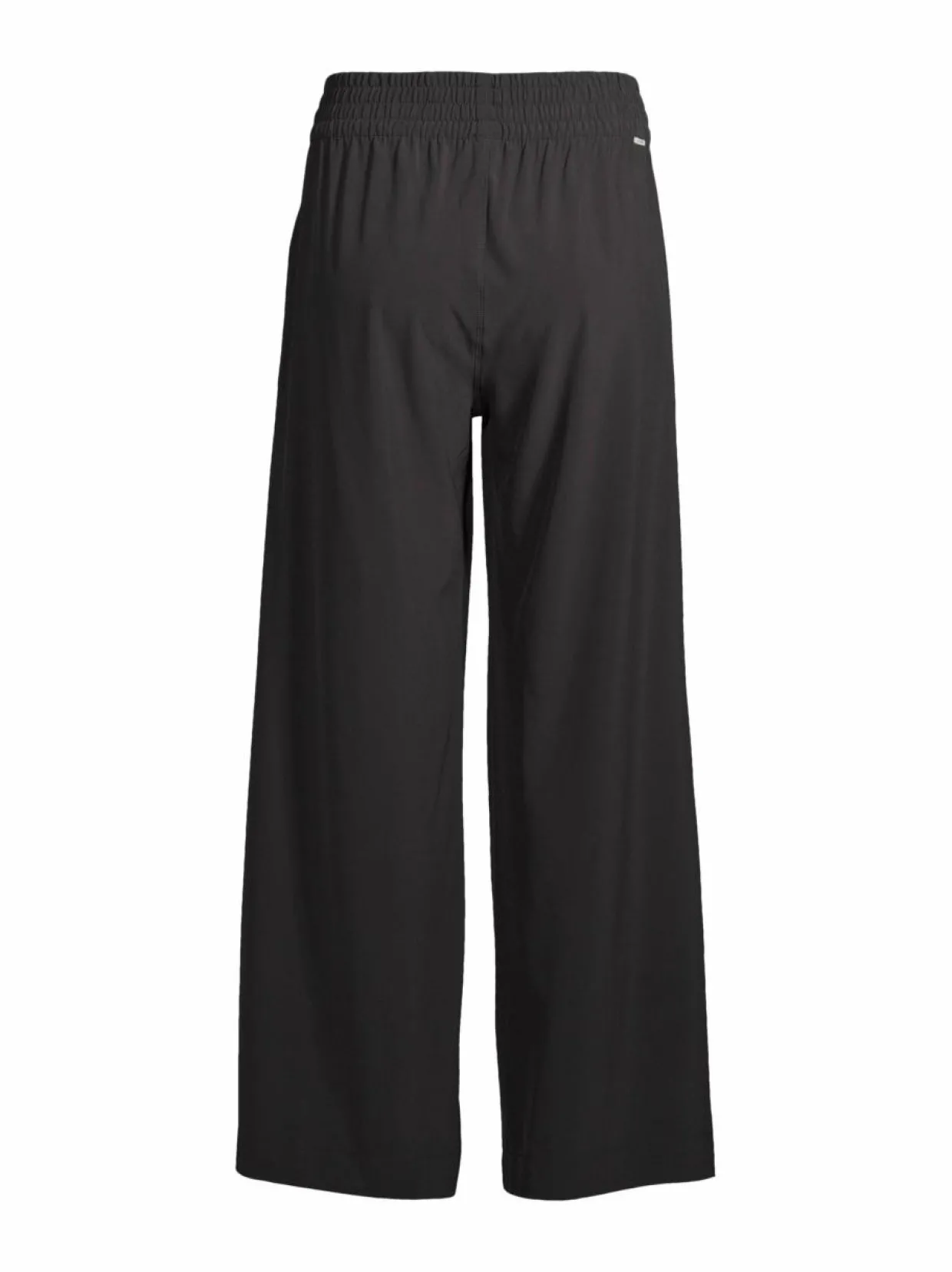 Mukavan leveälahkeiset kevyet housut Vuori-merkiltä. Villa-housuissa on neljään suuntaan joustava ja kosteutta siirtävä kangas, joka tuntuu silkkimäisen pehmeältä iholla. Tuote sisältää 45 % kierrätettyä polyesteriä. Vyötärölinja on korkea ja joustava.