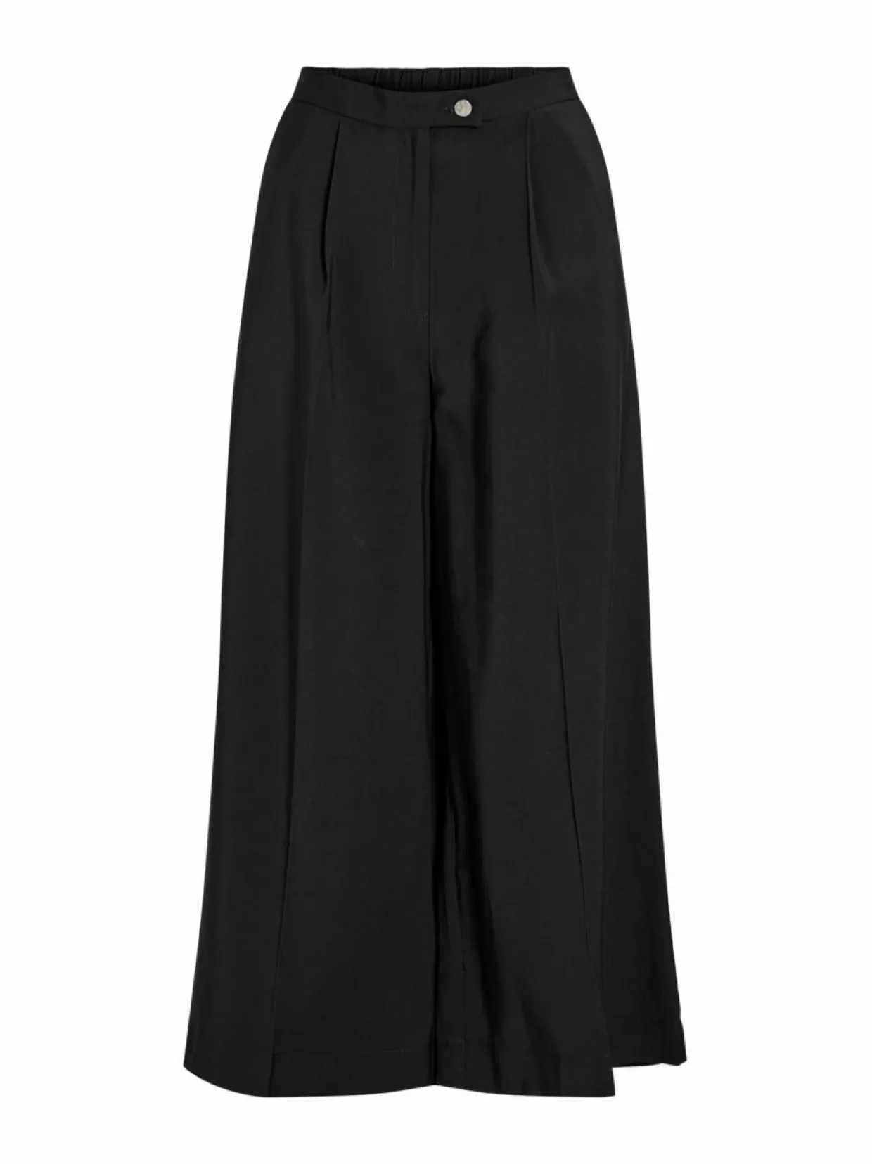 Materiaali93 % viskoosi, 7 % polyesteri Hoito-ohjeetPese samanväristen kanssa. Suositus: Pese ennen käyttöä. Pese ja silitä nurjalta puolelta. VäriBLACK BEAUTY Avainsanathousut, culotte, leveälahkeiset, Vila, mustat housut, naisten housut