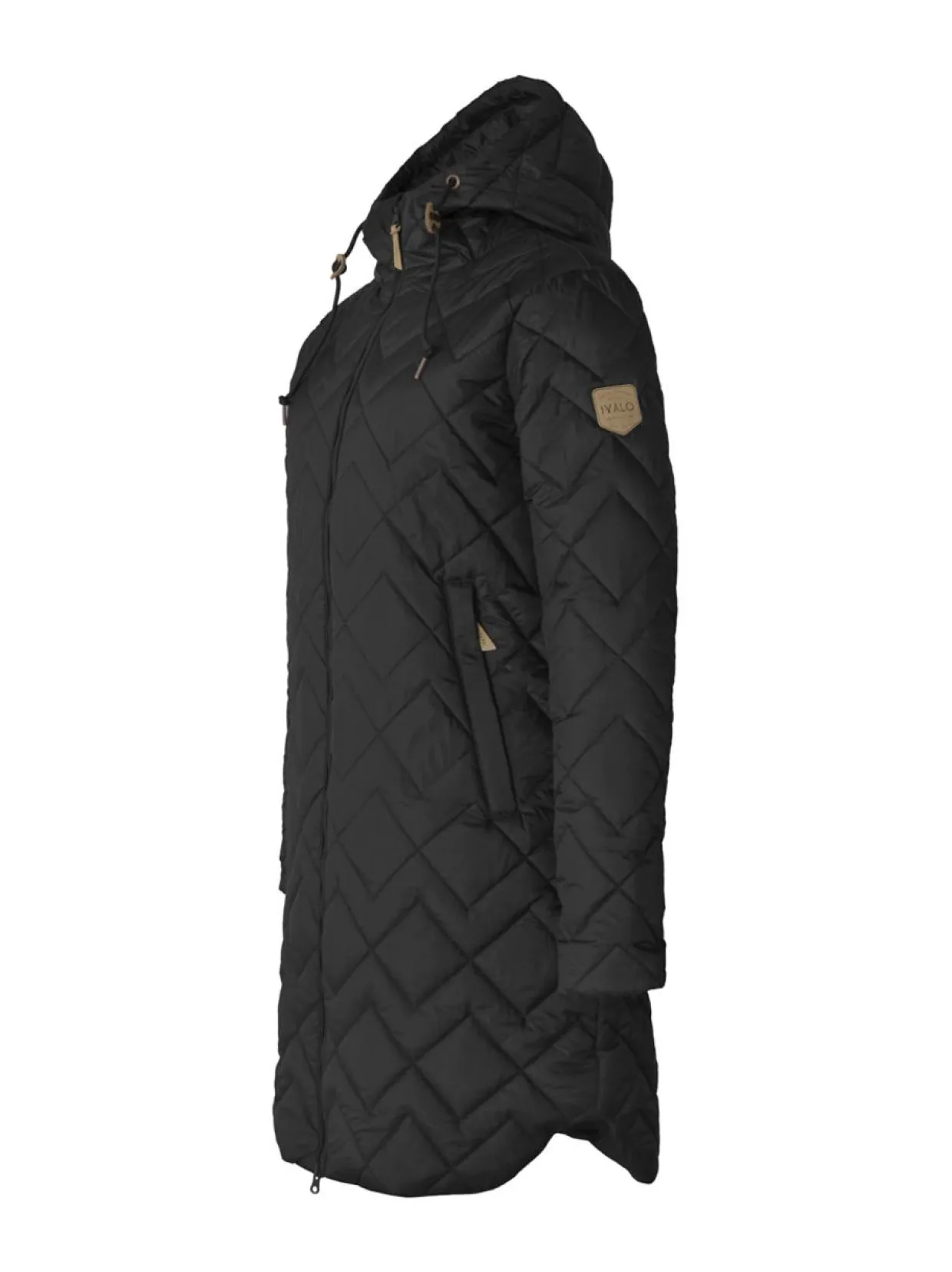 Ivalo Virva – Naisten pitkä kevytvanutakki. Monikäyttöinen ja pehmeä takki on pitkien syksyjen, leutojen talvien ja keväiden suosikki. Kaksisuuntainen vetoketju sekä vetoketjulliset taskut. Nyörisäätö hupun reunassa.Takin päällikangas, vuori ja vanu ovat tehty kierrätetystä polyesterista, joka valmistetaan mm. kierrätetyistä muovipulloista, säästäen luonnonvaroja ja vähentäen jätettä. Päällikankaassa on ympäristöystävällinen PFC-vapaa vedenhylkivyyskäsittely.