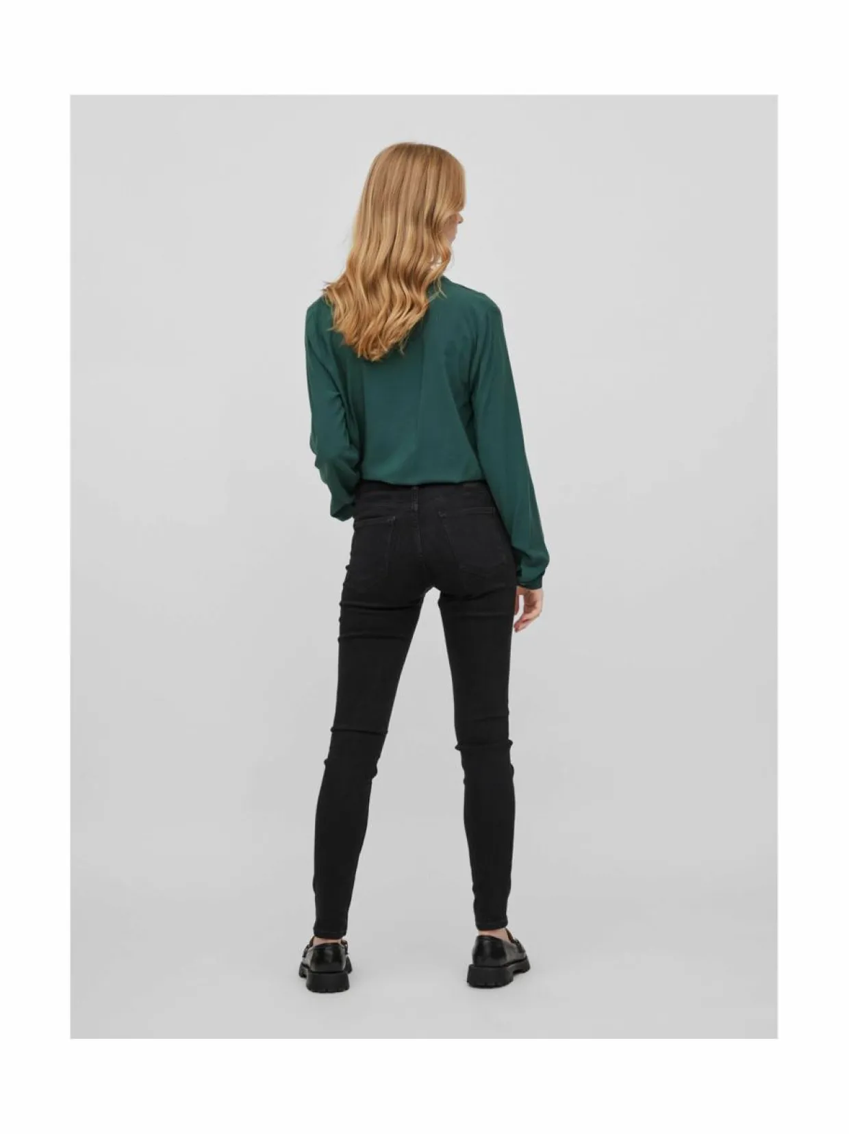 Materiaali92 % puuvillaa, 6 % polyesteriä ja 2 % elastaania Hoito-ohjeetPese samansävyisten kanssa PesuohjeetKonepesu ValmistusmaaTurkki VäriBLACK AvainsanatVILA, slim farkut, housut