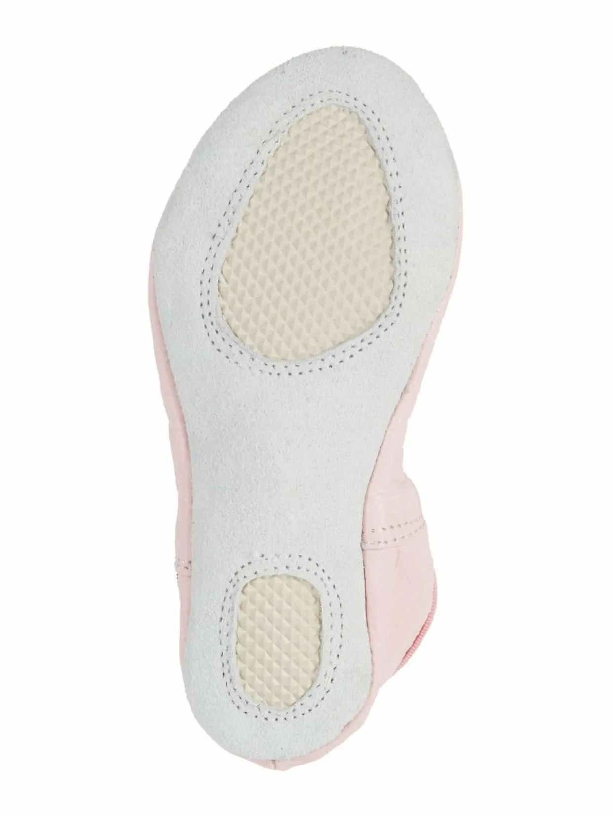 Nahkaisten voimistelutossujen pohjissa on pitävät, kuvioidut kumipaikat. Päällä on venyke.