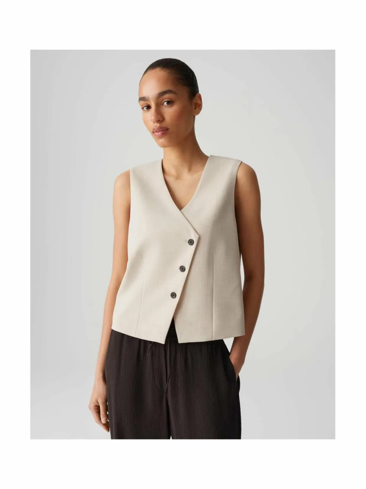 Materiaali63 % polyesteri, 33 % viskoosi, 4 % elastaani PesuohjeetKonepesu Väri20003 NATURAL GLAZE AvainsanatOpus, virallinen liivi, hihaton, toppi