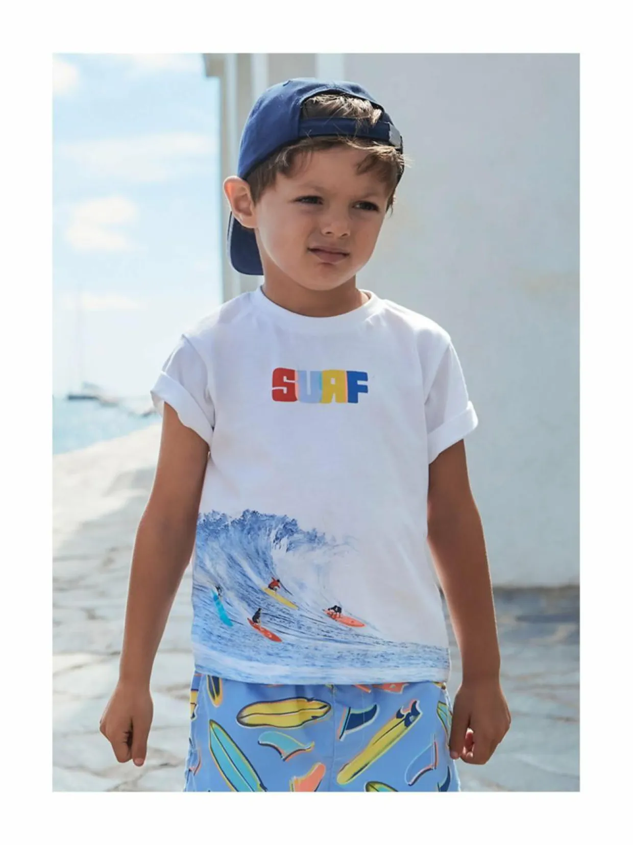 Mukava puuvillasta valmistettu t-paita jännittävällä surffi-aiheisella printillä. Paidassa on normaali istuvuus ja pyöreä pääntie.