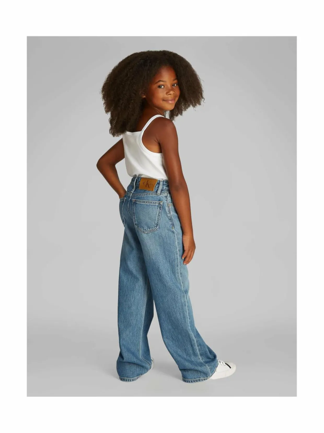 Mukavan rennonmalliset ja leveälahkeiset farkut lapsille. Calvin Klein Kids -malliston farkkuhousuissa on yhteensä viisi taskua. Logomerkki on sijoitettu taakse. Materiaalina on käytetty miellyttävän tuntuista puuvilla-lyocellia.