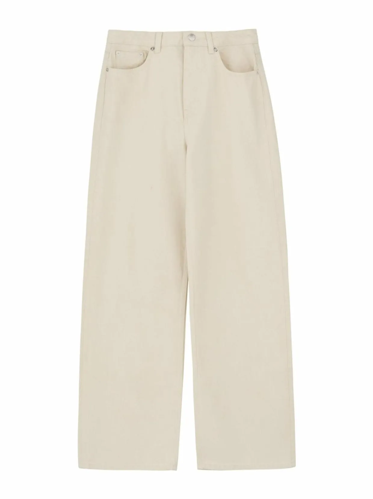 Mukavat farkut, jotka on valmistettu luomupuuvillasta. Farkut ovat leveät ja suorat, ja niissä on korkea vyötärö. Ne sopivat täydellisesti rentoon tyyliin ja ne ovat mukavat käyttää koko päivän. Luomupuuvilla on pehmeää ja hengittävää, ja se tuntuu iholla mukavalta. Luomupuuvilla on myös kestävämpi materiaali, joka kestää useita pesuja. Farkuissa on viisi taskua, ja ne suljetaan vetoketjulla ja napilla.