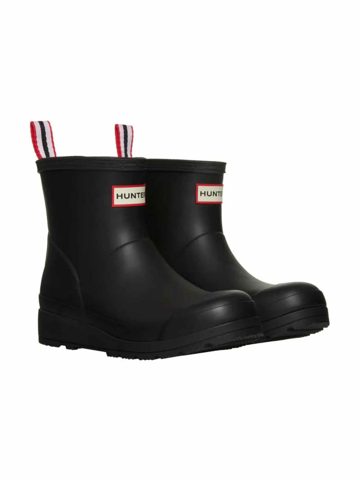Hunter Play Short on 100 % vedenpitävä ja mukava kumisaapas, joka sopii täydellisesti sadepäiviin. Ikoninen saapas valmistettiin ensimmäisen kerran vuonna 1956. Niissä on matala varsi, viisto korko ja pehmeä tekstiiluvuori. Valmistettu kestävästä kumista, ja niissä on tukeva pohja, mikä tekee niistä ihanteelliset metsäkävelyille tai päivälle kaupungissa. Saappaiden varressa on kangaslenkki, mikä helpottaa niiden pukemista ja riisumista.
