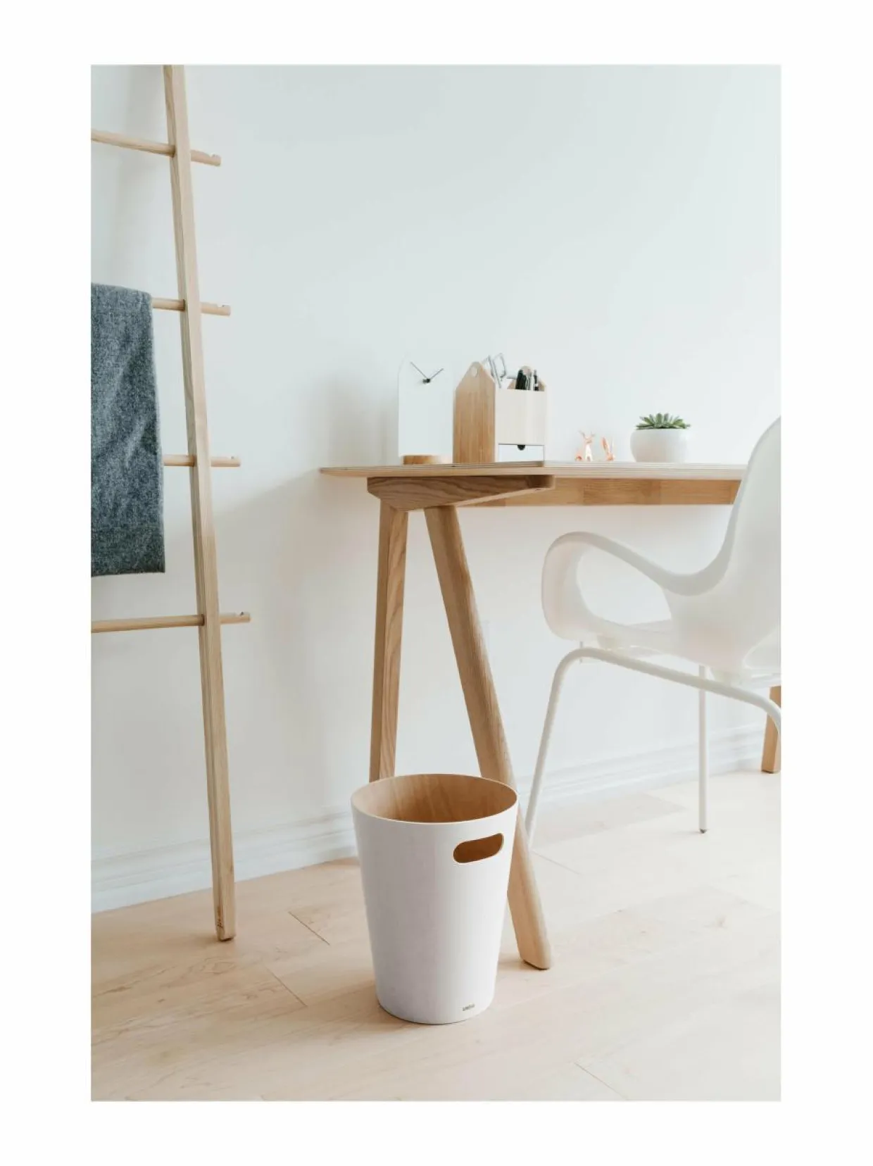 Kaksisävyinen Woodrow-roskakori tuo modernia otetta sisustukseen ja säilöö roskasi tyylillä. Korin vetoisuus on 9 litraa ja mitat 23 x 28 cm. Materiaali on puuta.