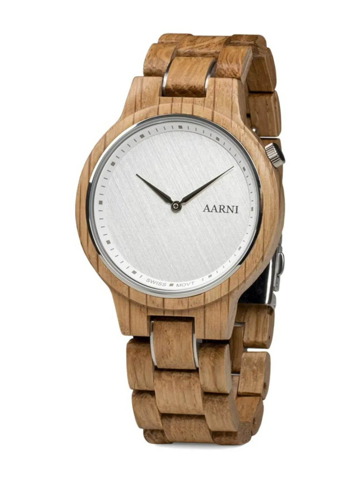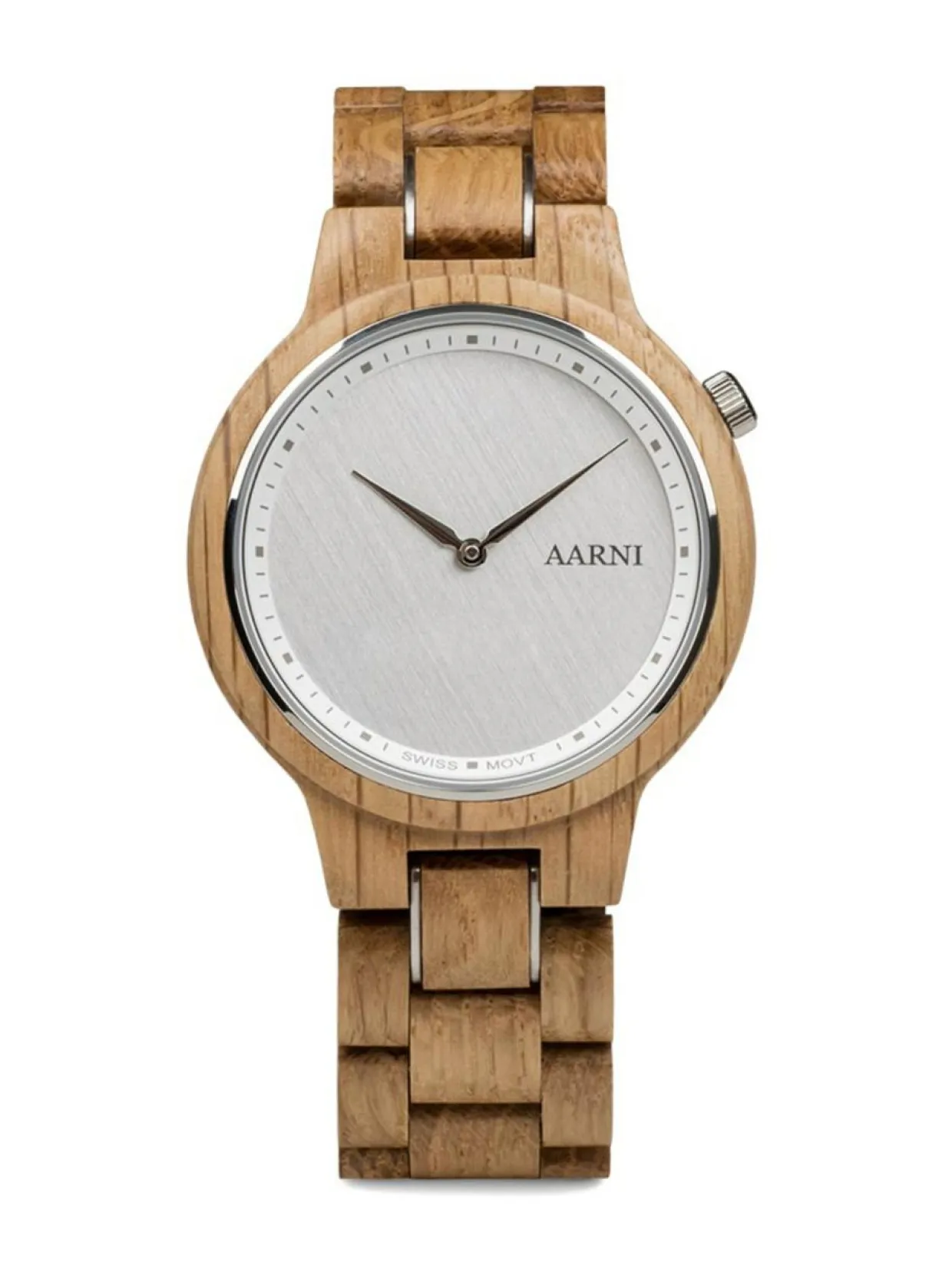 Valtaa ja voimaa. Tammesta valmistettu Aarni XO on näyttävä rannekello, jonka tiheät ydinsyyt tuovat eloa kellon kovaan pintaan. Pyöreä, minimalistinen kellotaulu kunnioittaa kellon klassisia linjoja. Aarni XO sopii sekä naisille että miehille. Kellon sydämenä toimii tarkka ja laadukas sveitsiläinen Ronda-koneisto.