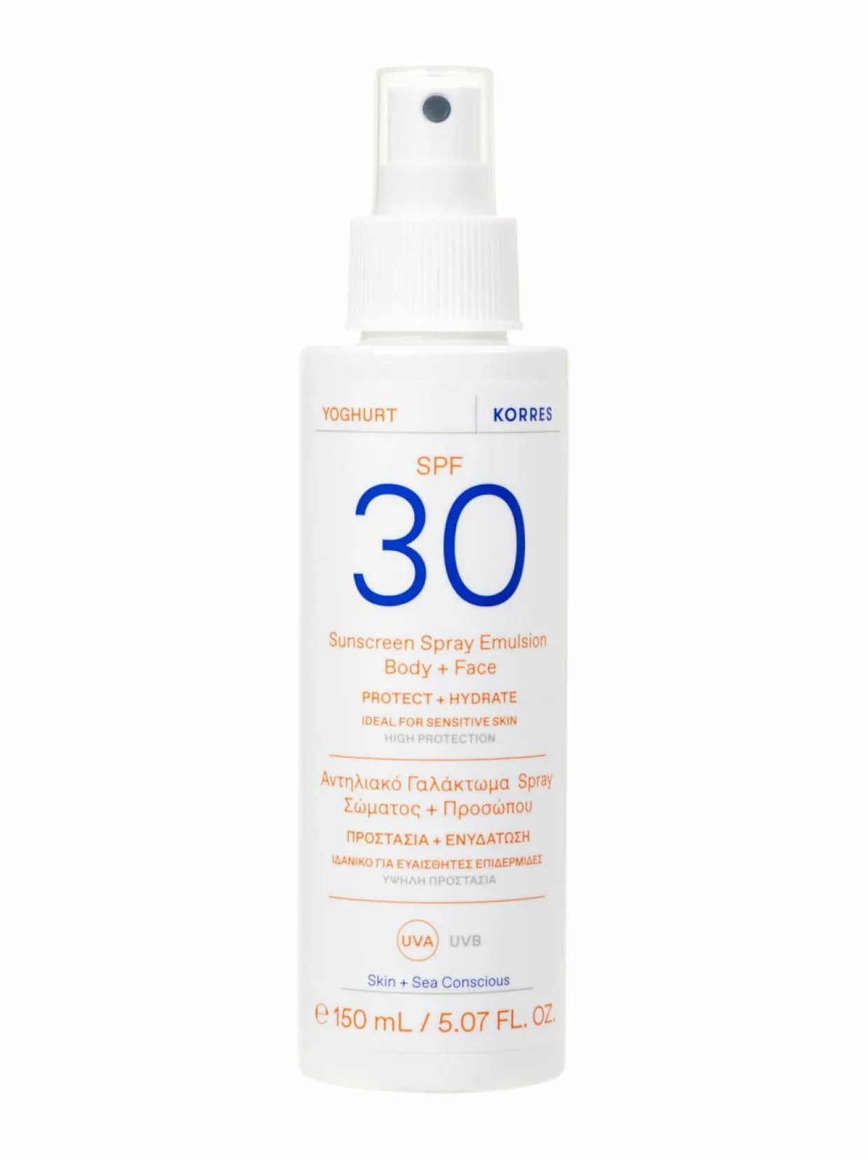 Nopeasti imeytyvä, suihkutettava emulsio kasvoille ja vartalolle kosteuttaa ihoa pitkään ja jättää miellyttävän tunteen. Sisältää jogurttia, joka on luonnollinen proteiinien lähde, sekä pantenolia ja E-vitamiinia. Rauhoittaa ja suojaa ihoa UVA- ja UVB-säteilyltä. Ennaltaehkäisee auringon aiheuttamia ikääntymisen merkkejä ja suojaa ilmansaasteita vastaan. Ei jätä valkoista pintaa iholle.