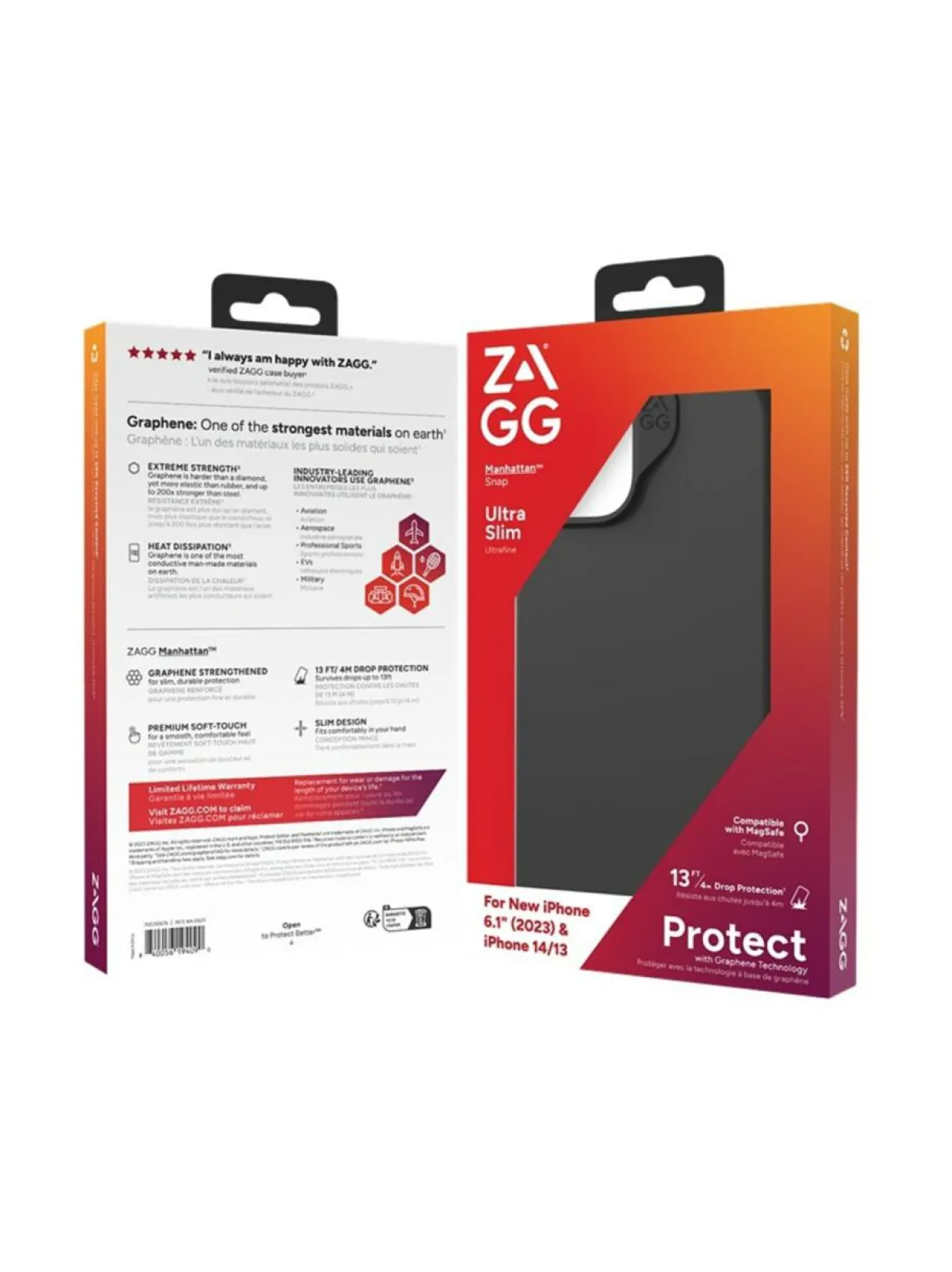 Zagg Manhattan Snap – musta suojakuori iPhone 15/14/13