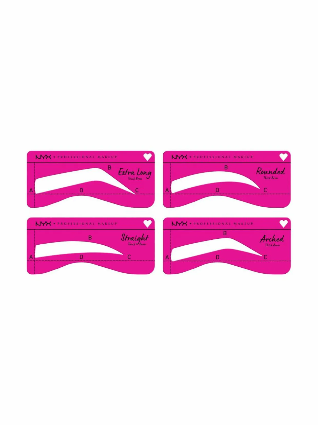 NYX Professional Makeup Zero To Brow Stencil -sapluunan avulla piirrät helposti haluamasi kulmien muodon riippumatta siitä, haluatko täyteläisemmät tai ohuemmat kulmat. Valitse joko ”Skinny” tai ”Thick” -sapluuna ja luo täydellinen kulmalook yhdessä Zero To Brow Longwear -kulmageelin kanssa. Kummassakin sapluunassa on 4 eri muotoa, joten voit luoda juuri sellaiset kulmat kuin haluat.
