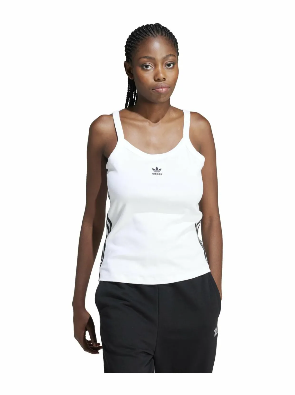 Materiaali94 % puuvilla, 6 % elastaani PesuohjeetKonepesu ValmistusmaaVietnam VäriIR6914 WHITE Avainsanatadidas Originals, adidas, kolmiraitatoppi, tank toppi, trikootoppi