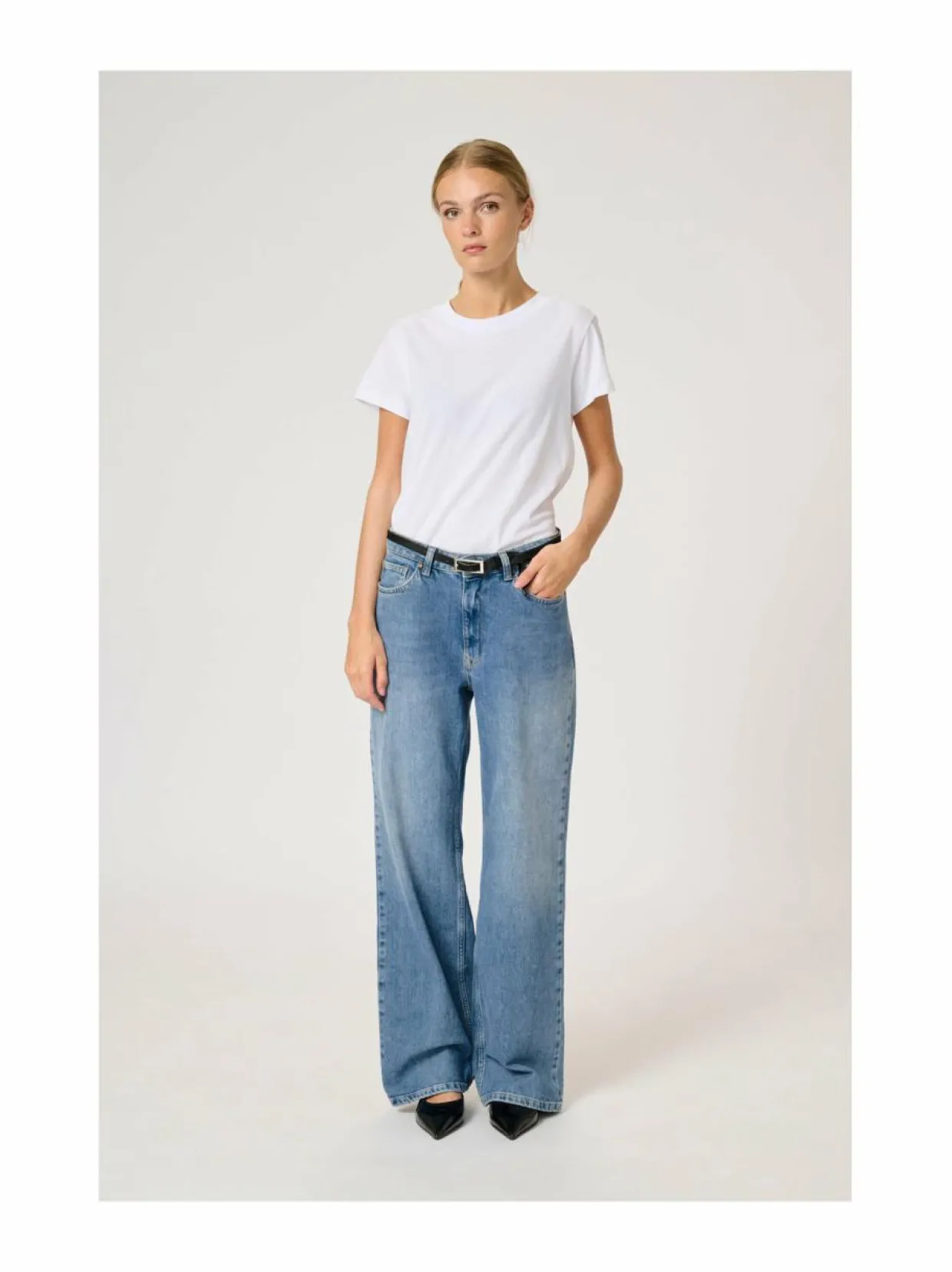 Mukavan korkeavyötäröiset ja leveälahkeiset farkut My Essential Wardrobe merkiltä. Tämä farkkumalli on klassisesti viisitaskuinen ja vyötärökaitaleelta löytyvät myös vyölenkit. 35 The Louis -farkut sopivat hyvin täydentämään vapaa-ajan pukeutumistyyliä.