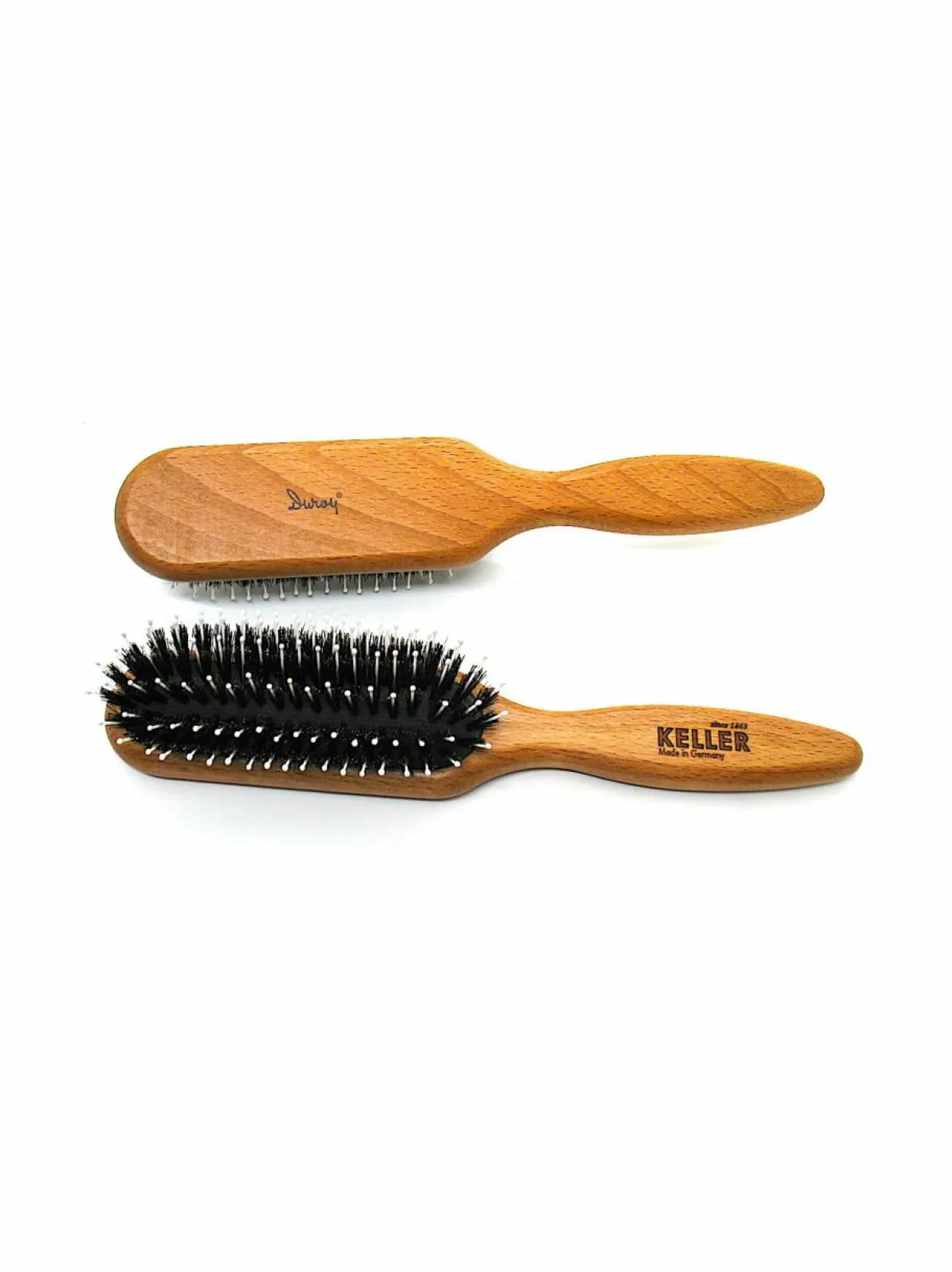 Laadukkaassa pyökkivartisessa harjassa on joustopiikit ja aito harjas. Kostea hius ei veny tai katkea, koska piikit joustavat harjattaessa. Valmistettu Saksassa.