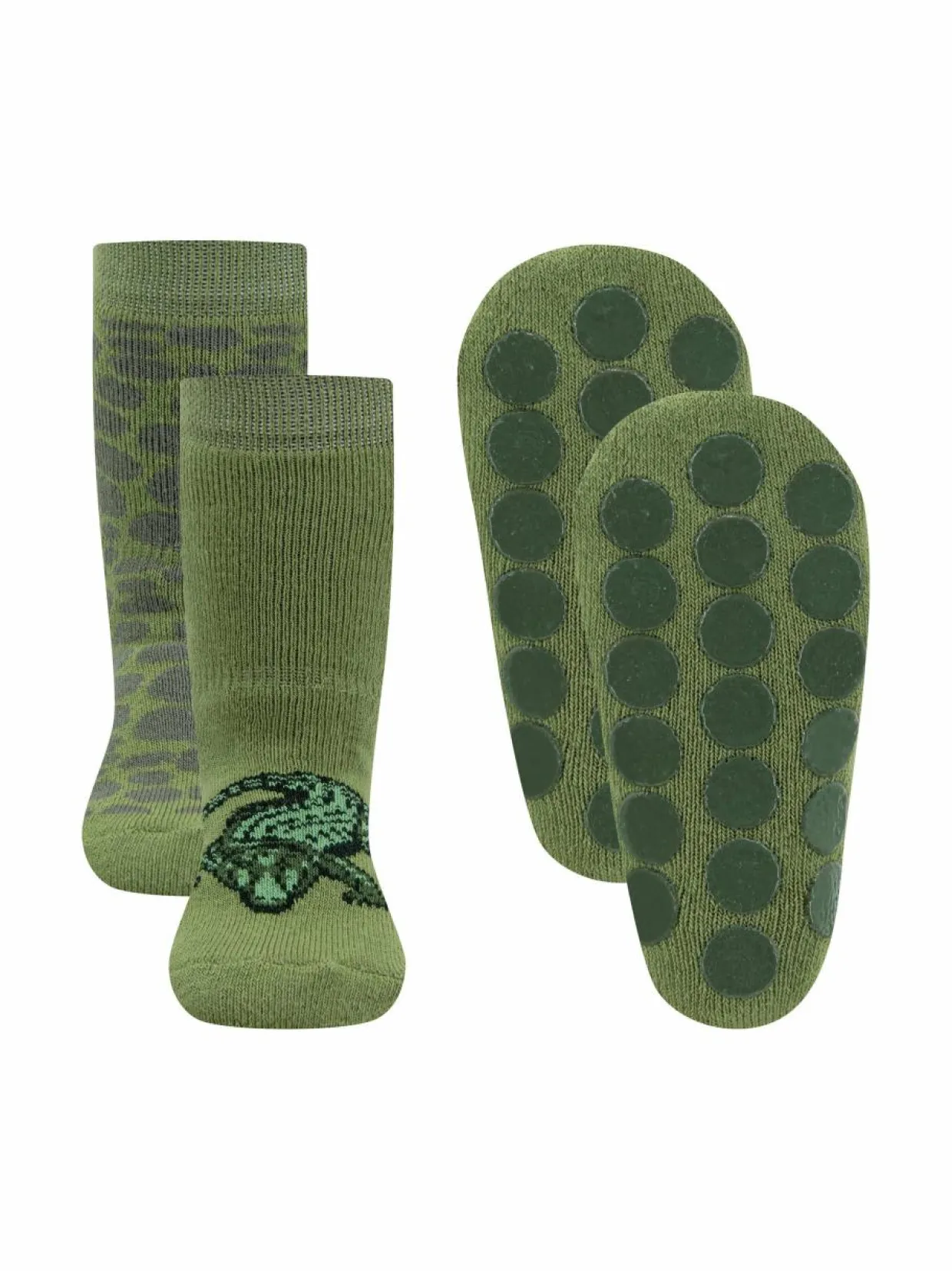 Pehmeät krokotiilisukat Ewers merkiltä. Varresta löytyy mukava kiristämätön resori. Korkean puuvillapitoisuuden ansiosta materiaali on hengittävää ja ihoystävällistä. Kantapäässä ja kärjessä on vahvikkeet kestävyyden lisäämiseksi. Liukuestekuvioitu pohja antaa hyvän pidon. Pakkauksesta löydät kaksi paria liukuestesukkia.
