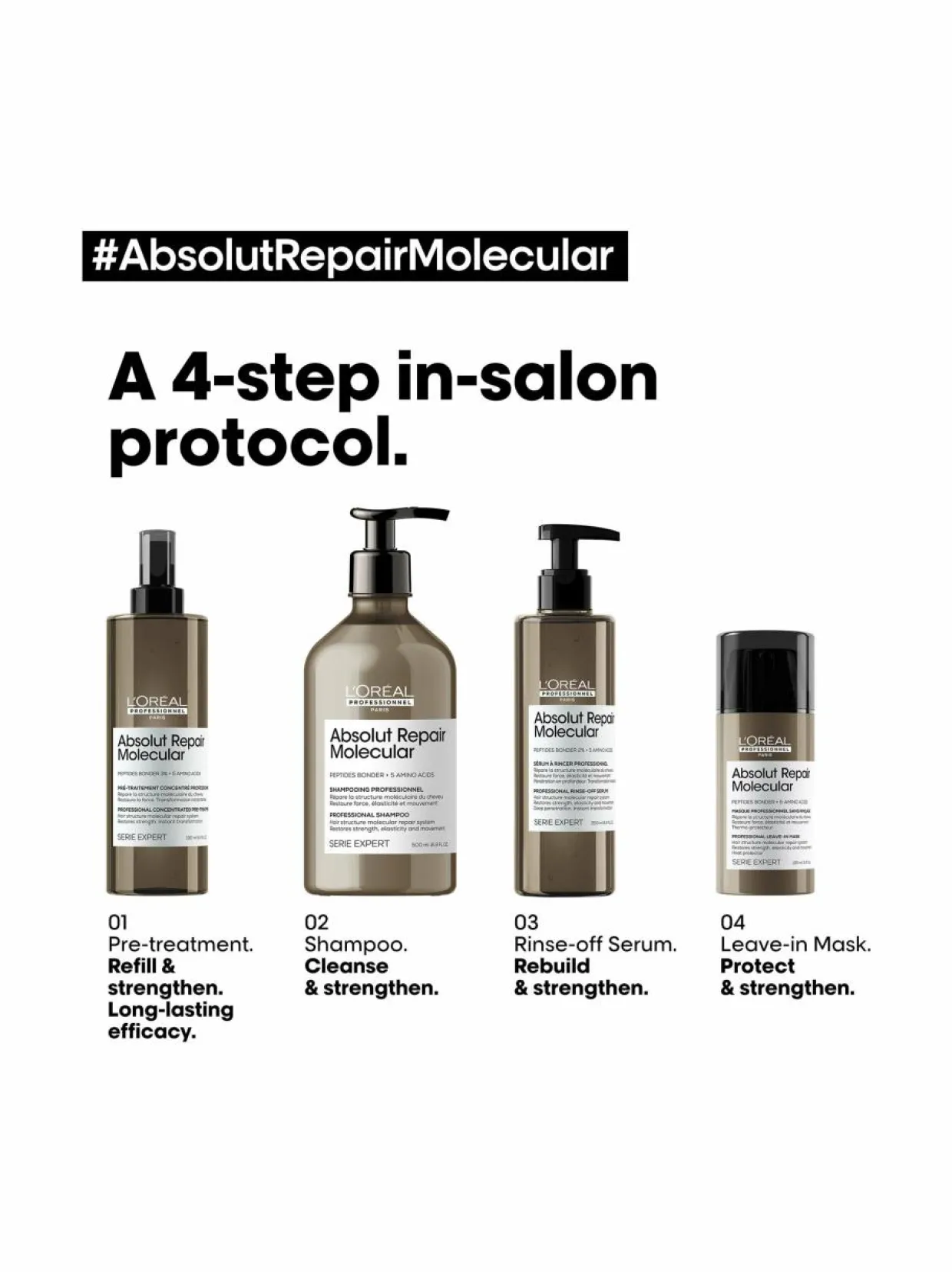 Tämä patentoidun teknologian shampoo, joka sisältää peptidisidosainetta + 5 aminohappoa, korjaa hiusten makromolekyylirakennetta. Tuotteen ylellinen koostumus muuttuu täyteläiseksi vaahdoksi, puhdistaa, selvittää hiuksia ja tarjoaa korkeatasoista hoitavuutta. Tarjoaa vahvemmat hiukset palauttaen niiden elastisuuden ja liikkuvuuden.Käyttö:Levitä shampoo kosteisiin hiuksiin. Vaahdota, kunnes runsas vaahto muodostuu. Huuhtele. Optimaalisia tuloksia varten käytä shampoon jälkeen vielä Absolut Repair Molecular hoitoseerumia ja hiuksiin jätettävää hoitovoidetta. Jos tuotetta joutuu silmiin, huuhtele välittömästi runsaalla vedellä.