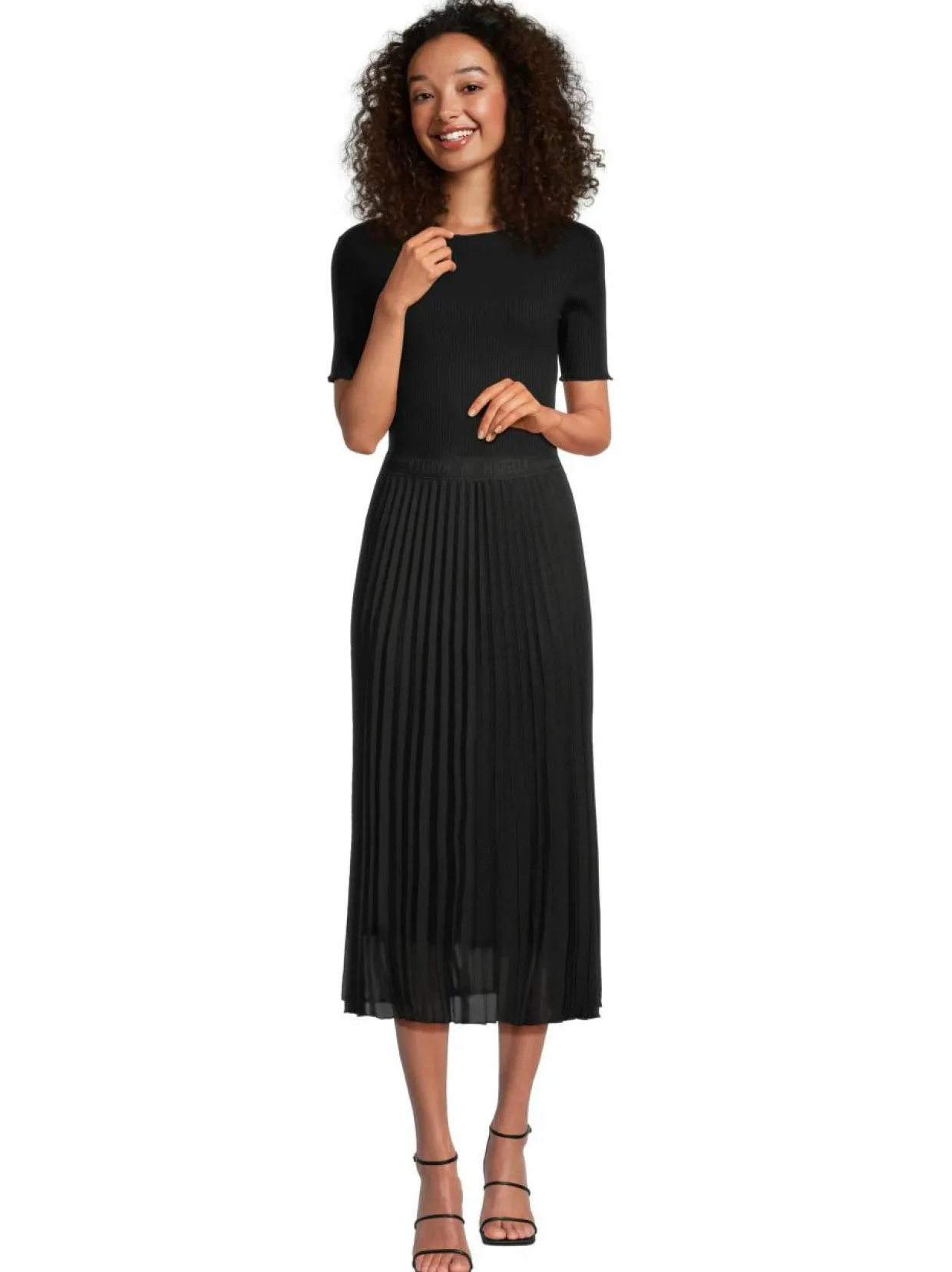 Materiaali51 % viskoosi, 49 % polyesteri,vuori 94 % polyamidi, 6 % elastaani Hoito-ohjeetNoudata tuotteen hoito- ja pesuohjeistuksia huolellisesti. ValmistusmaaKiina Väri001 BLACK Avainsanathame, pliseerattu, joustava vyötärö, pliseehame, Marella