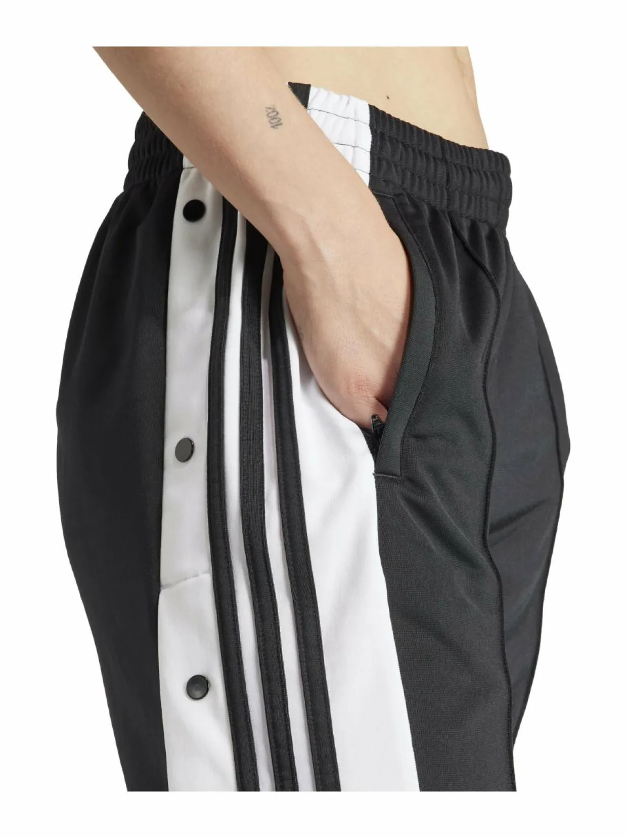 Adidaksen mukavat verkkahousut klassisilla kolmiraidoilla. Lahkeissa on painonapeilla avattavat halkiot. Normaali vyötärö on joustava ja säädettävä. Housuissa on vetoketjulliset sivutaskut. Valmistettu vastuullisesta kierrätyspolyesteristä.