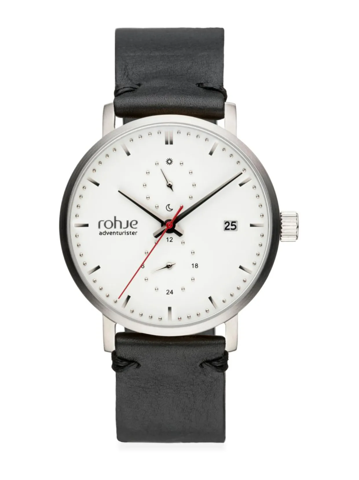 Rohje-rannekello on kotimaista kellomuotoilua. Hillityn ulkoasunsa ansiosta Rohje Adventurister White poronnahkaisella rannekkeella sopii tilanteeseen kuin tilanteeseen aina luonnosta urbaaniin ympäristöön, juhlaan ja arkeen.