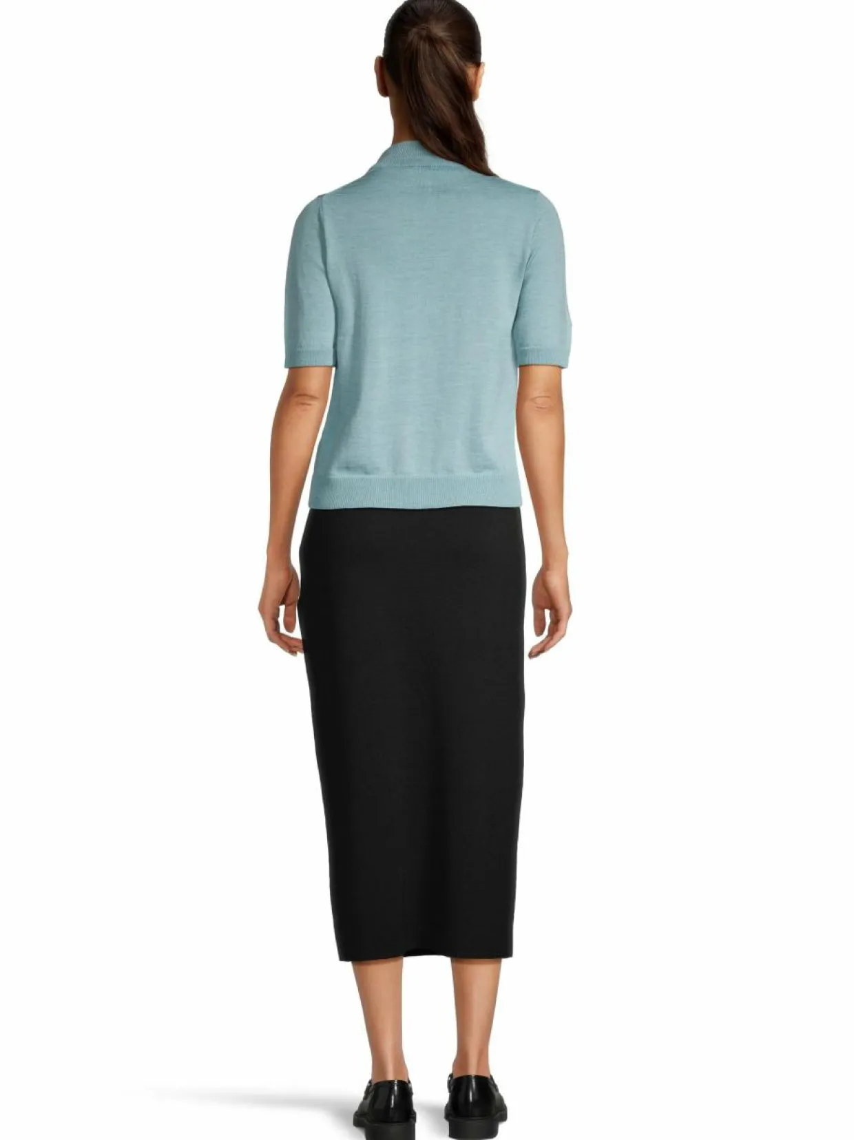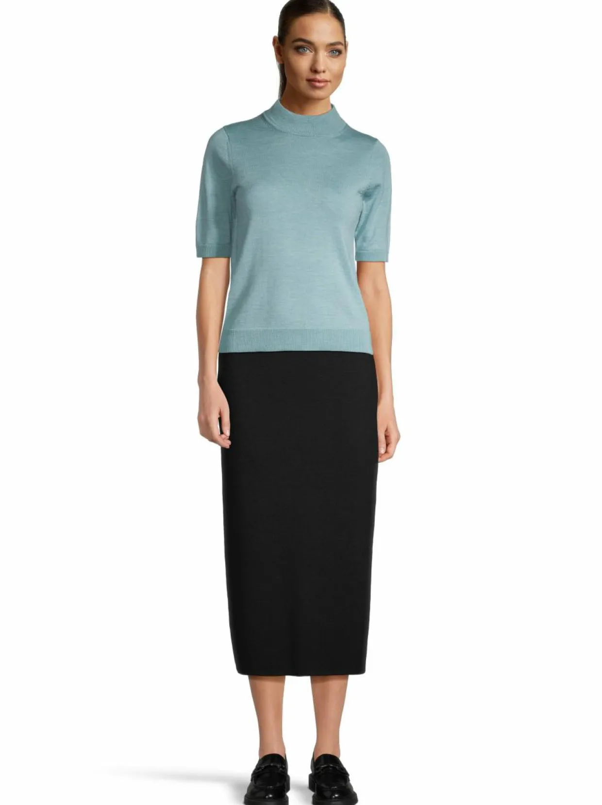 ESSENTIALS by Stockmannin midimittainen neulehame on helposti yhdistettävä vaatekappale, joka sopii niin arkeen kuin juhlaan. Aino-hame on valmistettu pehmeästä ja hengittävästä merinovillasta. Se sopii mainiosti täydentämään syys- ja talvikauden asukokonaisuutta. Merinovillan kuidut ovat huomattavasti ohuempia ja pidempiä verrattuna perinteiseen villaan. Kuidun pituus ja paksuus vaikuttaa sen ihotuntuun. Lyhyempi sekä paksumpi villakuitu tuntuu monesti iholla ikävän kutittavalta. Merinovillan kuitu onkin pitkä ja huomattavasti ohuempi ja täten pehmeämpi. Tämän ansiosta merinovilla sopii monesti myös sellaisille ihmisille, jotka välttelevät villoja kutittavan ominaisuuden takia.