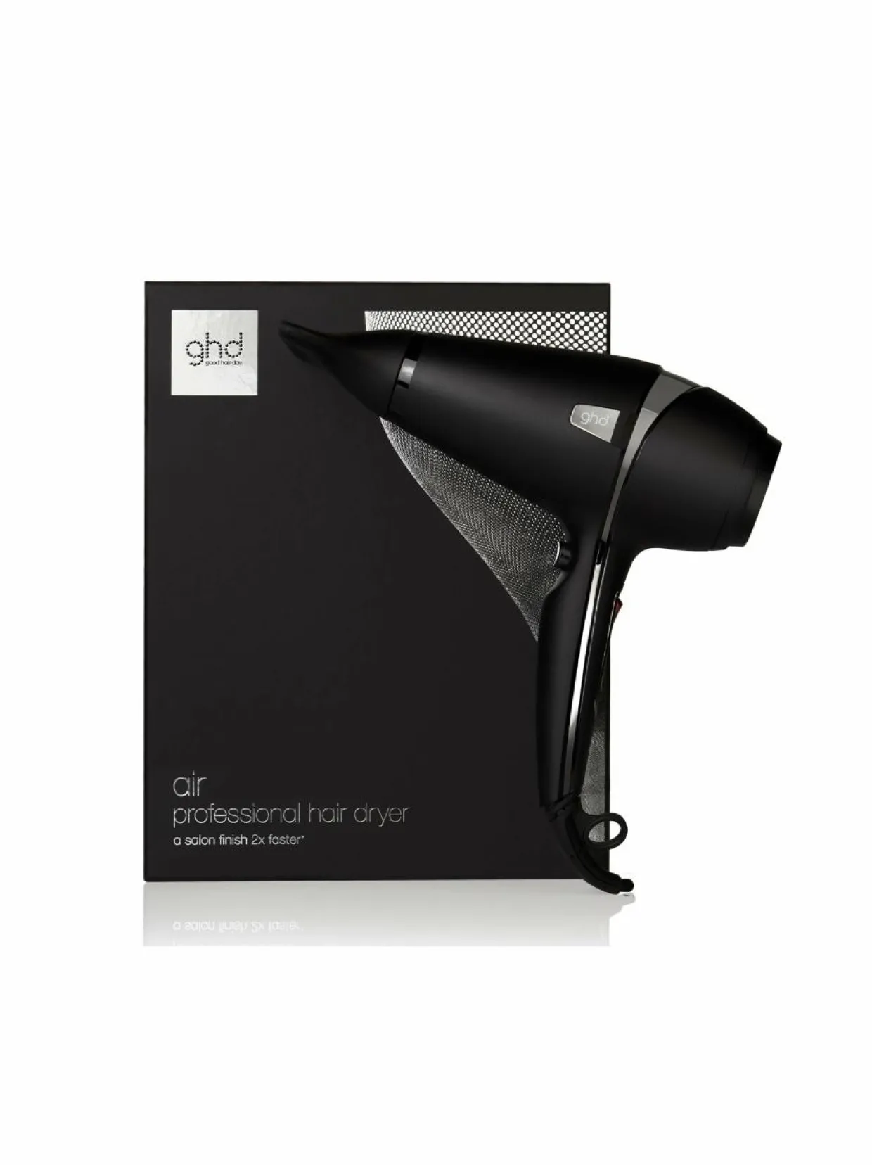 ghd Air® professional -hiustenkuivaajalla saat upeat hiukset nopeammin*. Tehokas 2 100 W:n** ammattitasoinen moottori ja patentoitu irrotettava ilmansuodatin antavat korkeapaineisen ilmavirran nopeaan kuivaukseen. Edistynyt ionitekniikka vähentää pörröisyyttä ja sähköisyyttä ja antaa kampaamotasoisen lopputuloksen puolessa ajassa*. Tehon ja lämpötilan säädön avulla voit räätälöidä föönauksen hiustyypillesi sopivaksi. Viileäpuhalluspainike auttaa lukitsemaan valmiin kampauksen paikalleen kylmällä puhalluksella. Ergonominen muotoilu tekee hiustenkuivaajasta mukavan sekä vasen- että oikeakätisille käyttäjille.