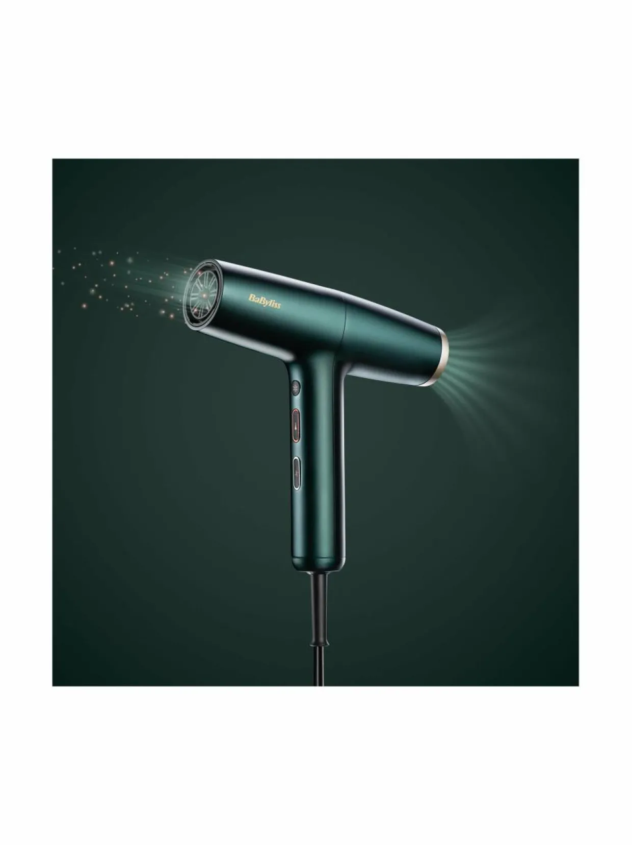 Kevyt, pitkäikäinen ja nopea digitaalinen moottori, joka on suunniteltu erittäin tehokkaaseen kuivaamiseen 200 km/h ilmannopeudella. Erittäin hiljainen Moottori ja puhallin on kalibroitu täydellisesti tasaisen ilmavirran sekä edistyneen melunvaimennuksen ja erittäin hiljaisen föönauksen takaamiseksi. Erittäin kevyt Vain 380 g – kevyin hiustenkuivaajamme. Erikoissuunniteltu helppokäyttöisyyttä ajatellen.- Nopea digitaalinen moottori Kevyt, pitkäikäinen ja nopea 1700 W:n digitaalimoottori tuottaa erittäin nopean 200 km/h ilmanopeuden.