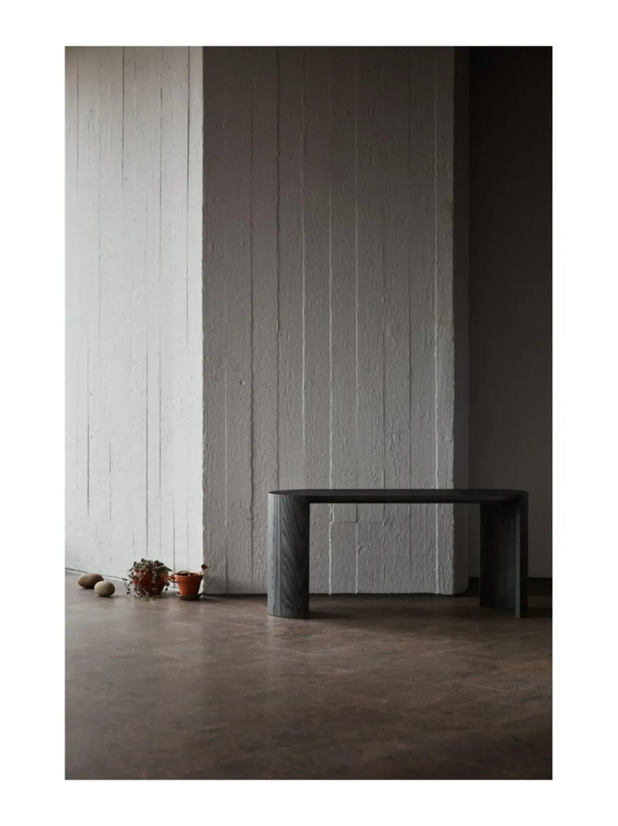 Joanna Laajisto suunnitteli tämän viehättävän massiivisaarnisen kalusteen alunperin osaksi Turun saaristossa sijaitsevan Villa Airisto -majatalon sisustusta. Saaristolaisuus näkyykin harkitussa muotokielessä, joka korostaa kauniisti jakkaran jalkarakenteen epäsymmetristä muotoa ja antaa tilaa puun luontaiselle ilmeelle.