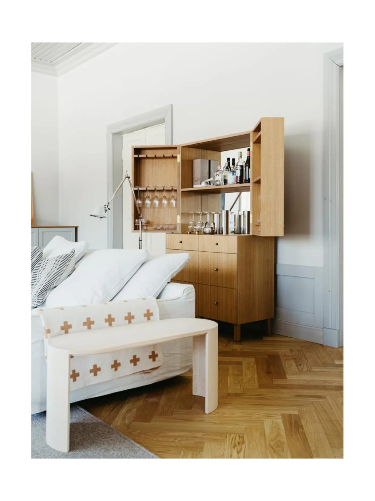 Airisto-penkki on kaunis ja monikäyttöinen – sitä voidaan käyttää sivupöytänä tai jakkarana.