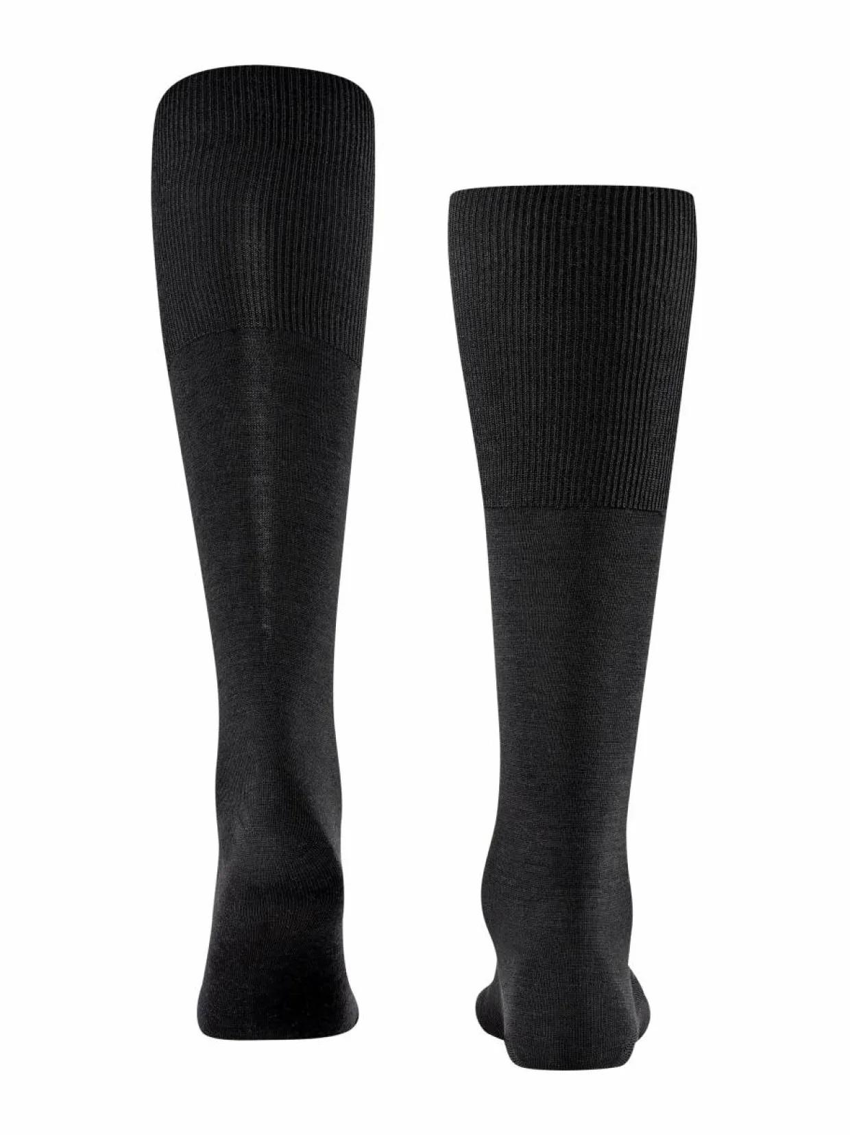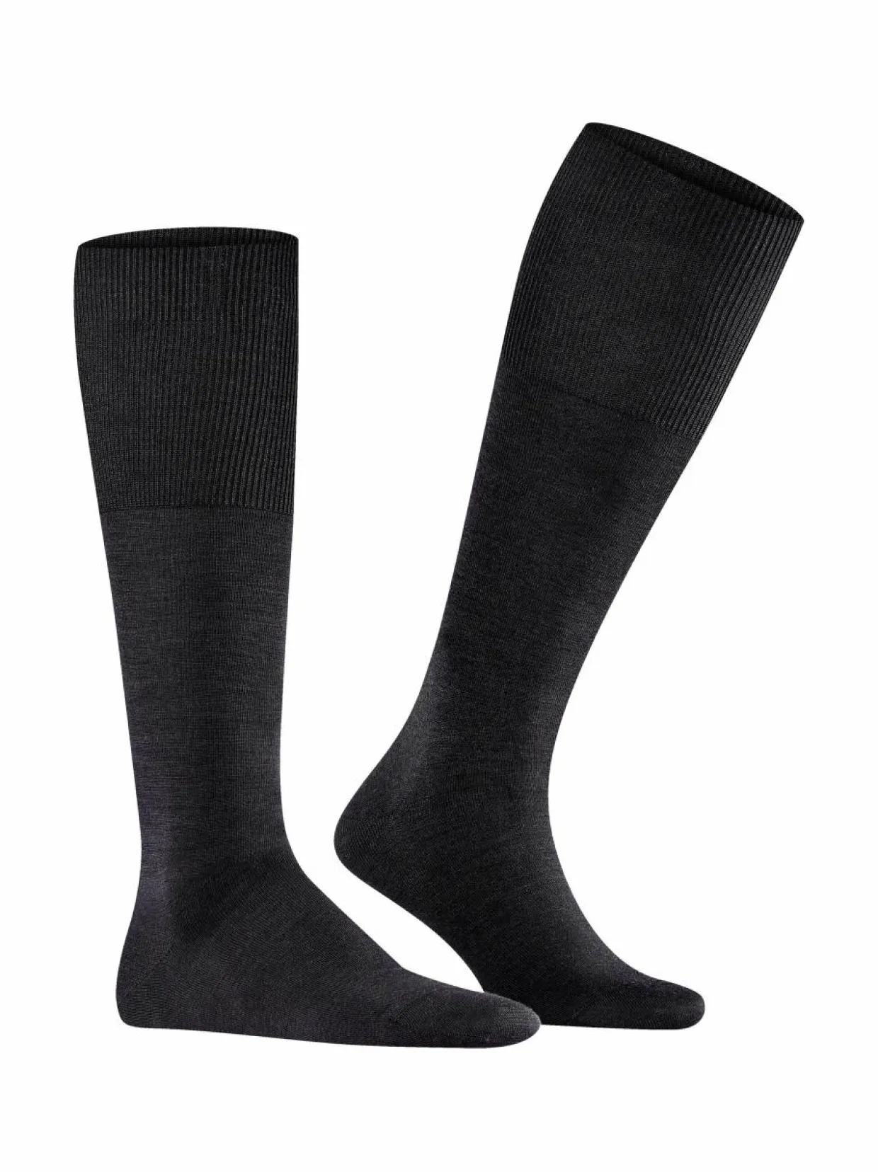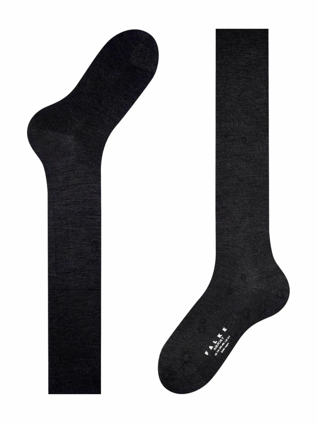Falke Airport -polvisukkien sisäpuoli on pehmeää puuvillaa ja ulkopuoli lämpöä eristävää merinovillaa. Sukissa on mukavan leveä resori sekä vahvistetut kantapäät ja varvasosa. Pohjasta löytyy logomerkki.