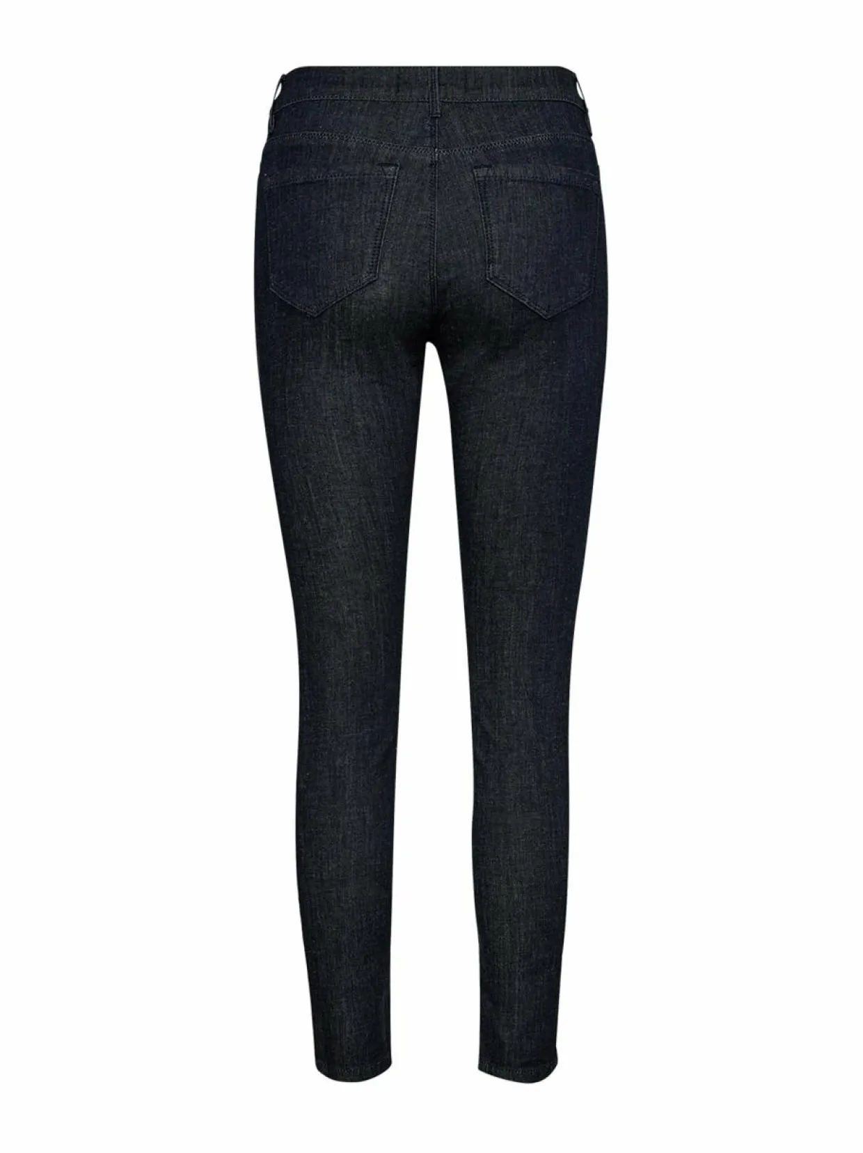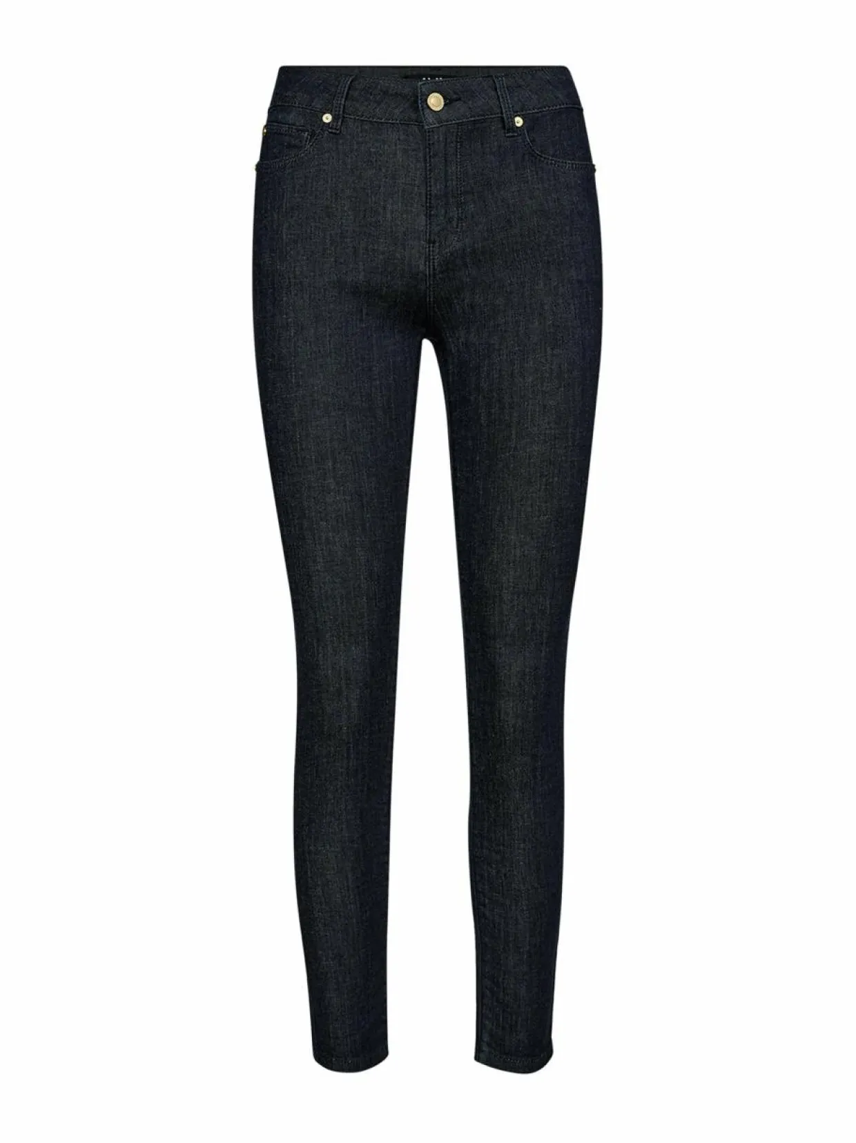 Trendikkäät farkut skinny fit -istuvuudella. Yksityiskohtana viisi taskua, kapeat lahkeet ja korkea vyötärölinja. Nilkkapituisen farkkumallin materiaaliin on lisätty myös joustoa käyttömukavuuden takaamiseksi.