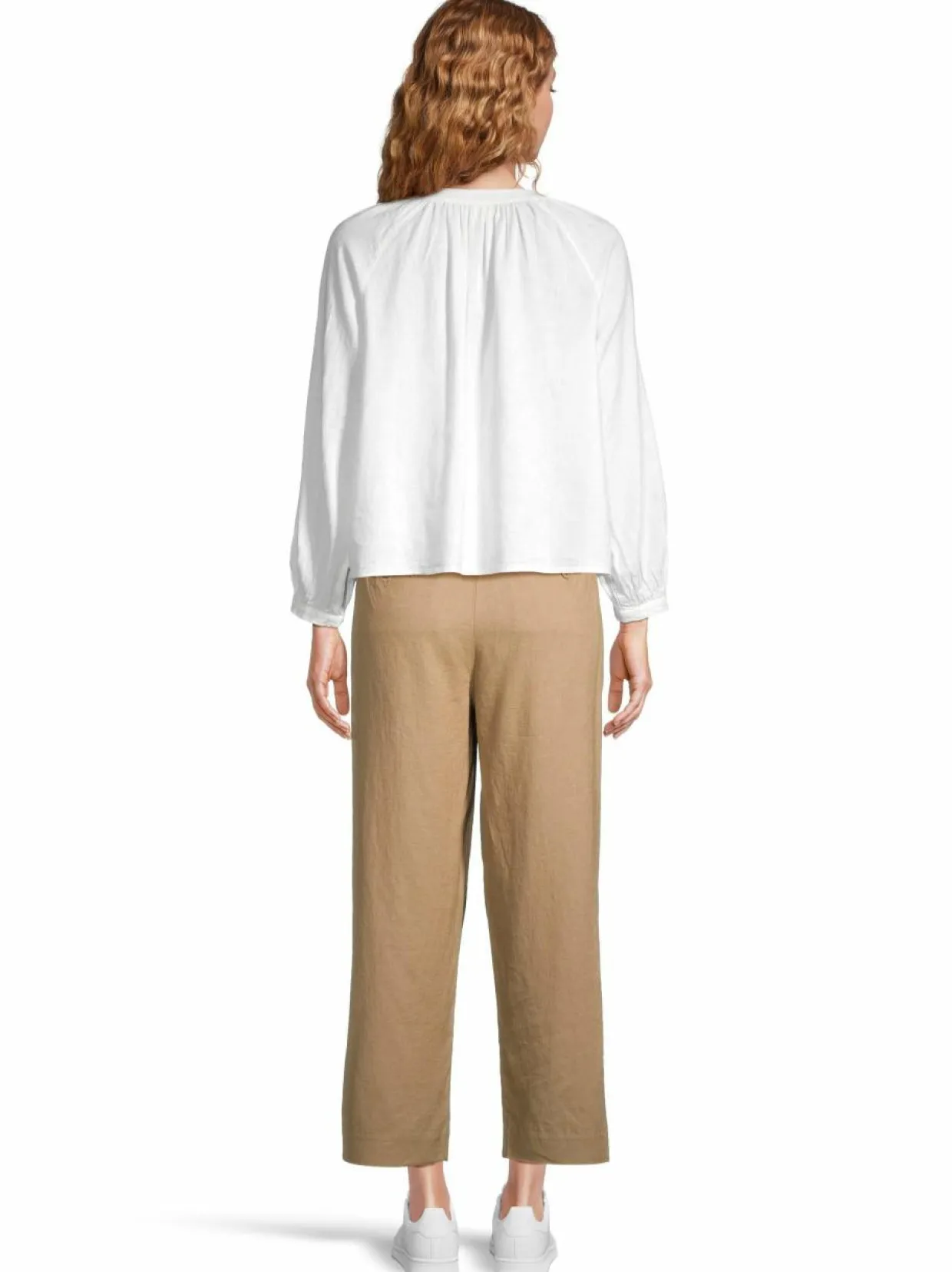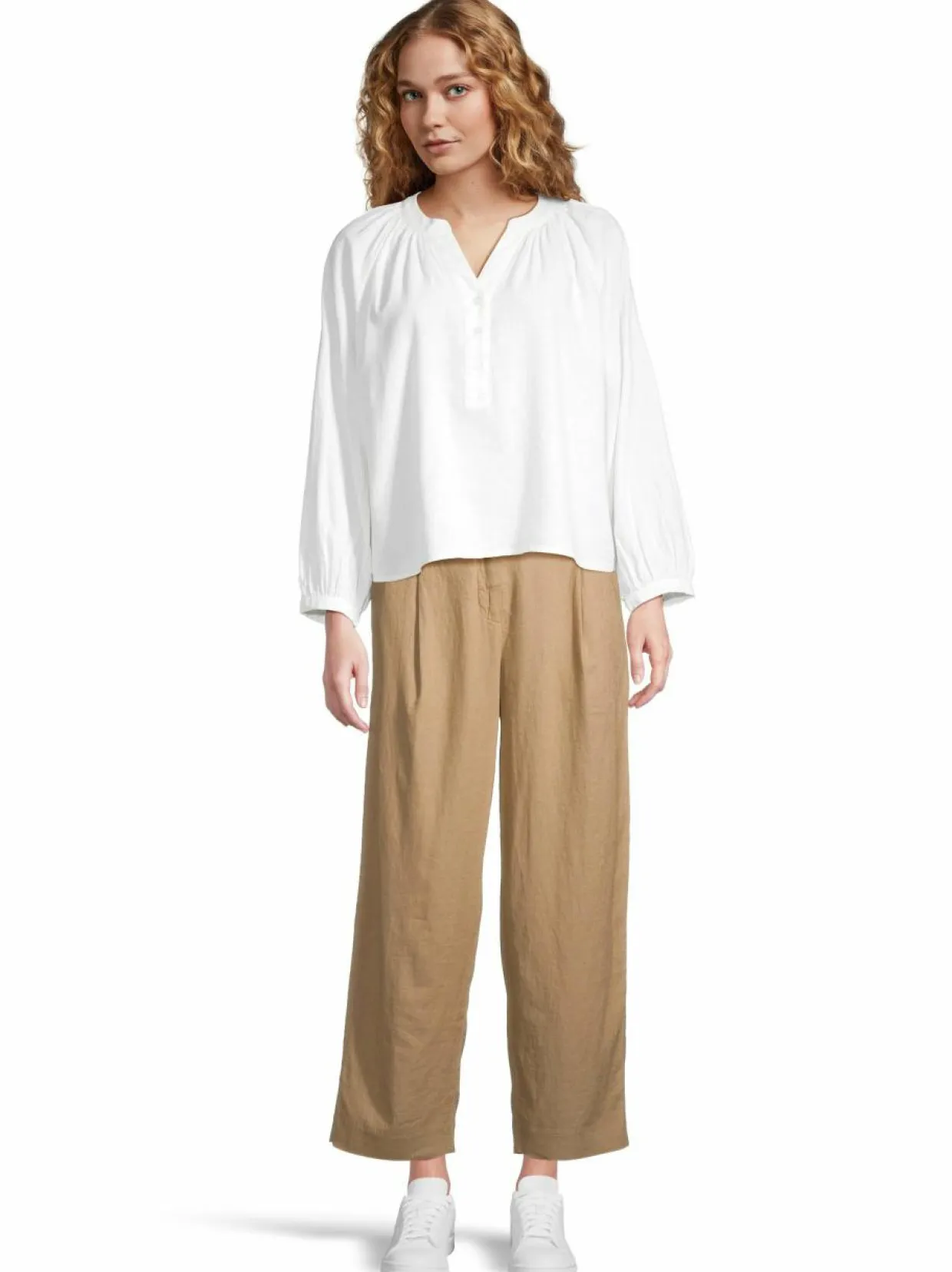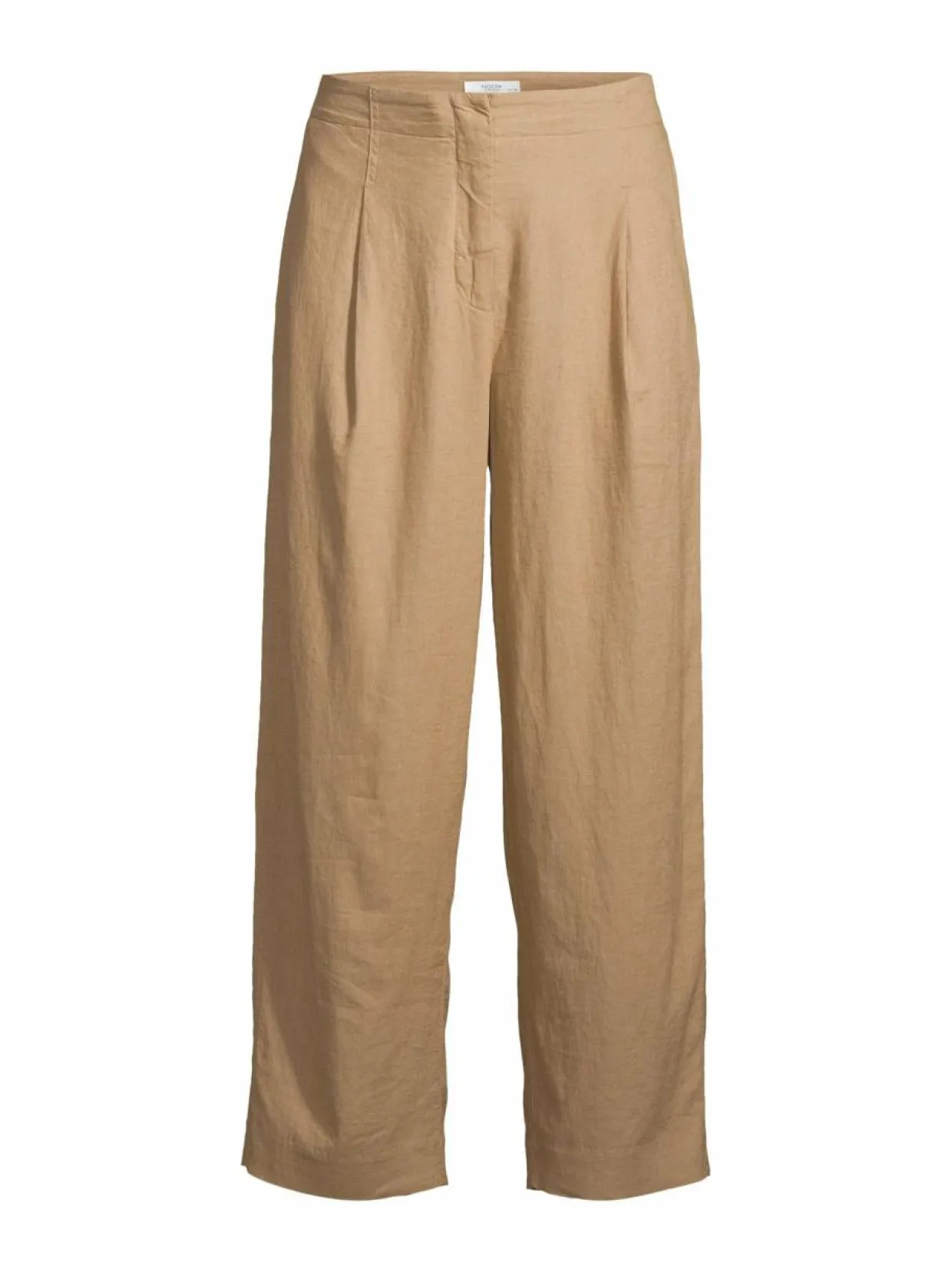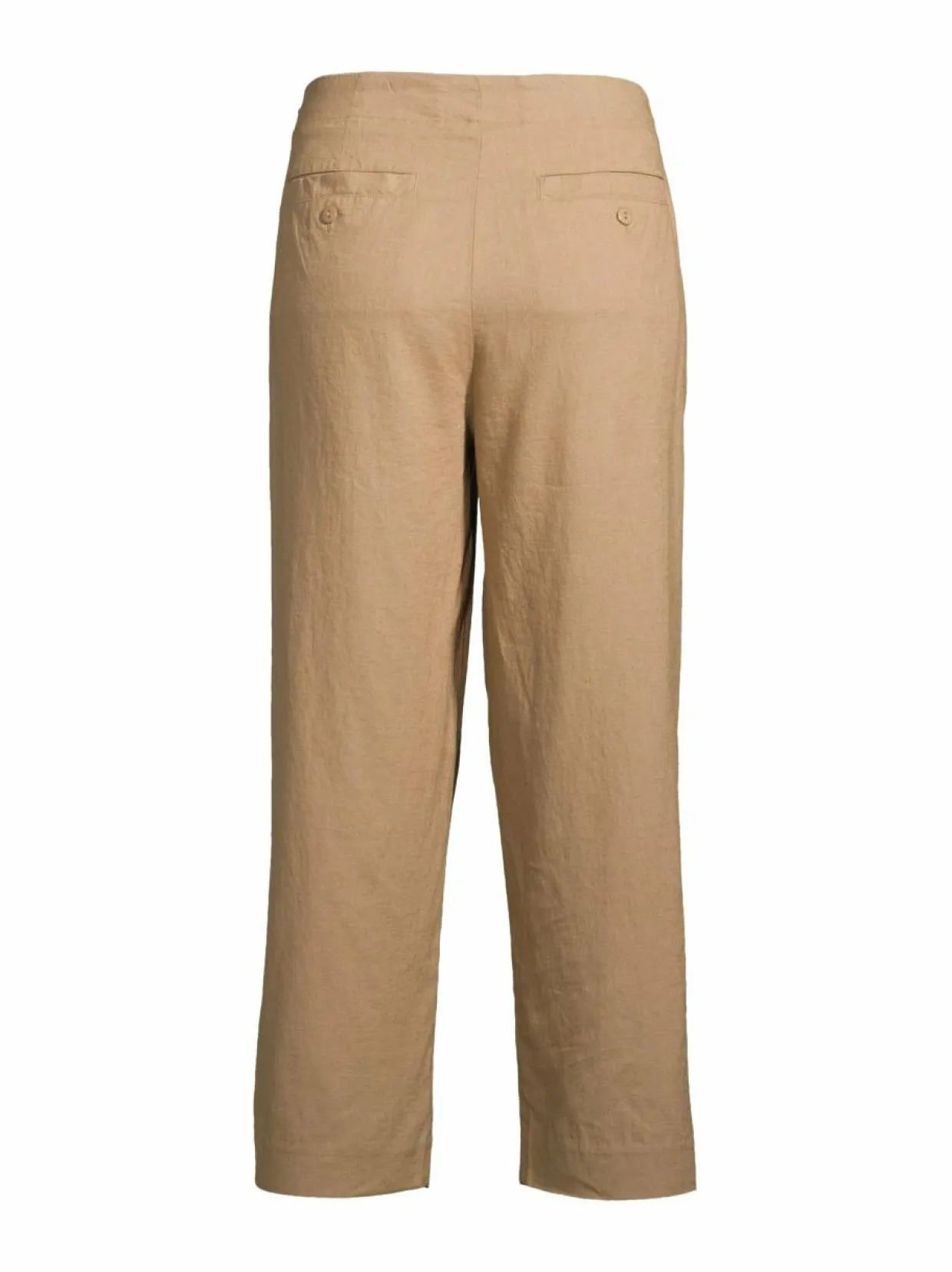 Nämä housut ovat valmistettu pellava-viskoosisekoitteesta, ja niissä on leveät lahkeet. Housuissa on kaksi taskua edessä ja kaksi taskua takana. Housut ovat mukavat ja hengittävät. Ne sopivat täydellisesti kevyempään pukeutumiseen.
