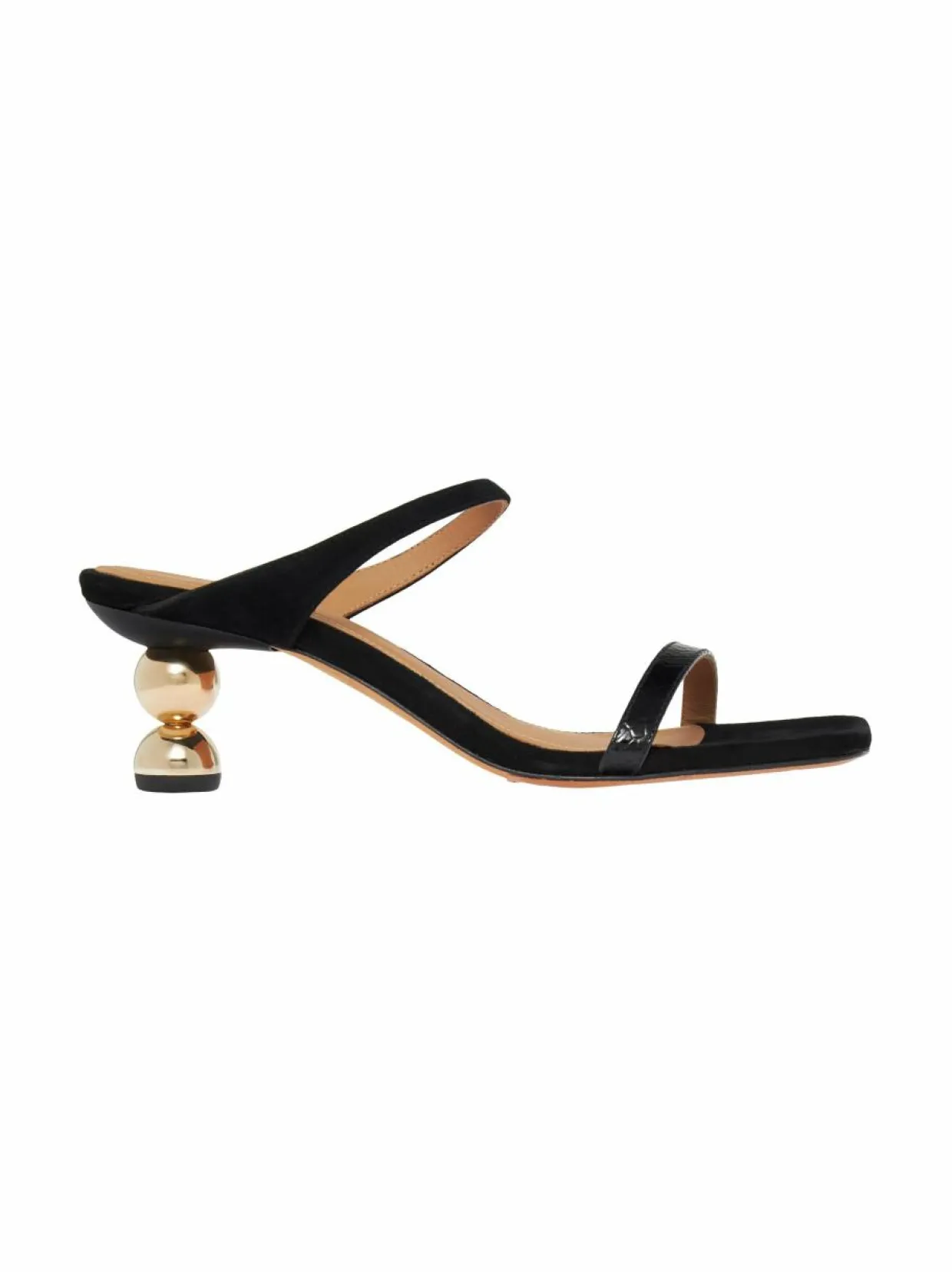PäällinenNahka SisäpuoliNahka UlkopohjaKumi ValmistusmaaEspanja Väri001 BLACK Avainsanatkorkokengät, Flattered, metallikorko, kullanvärinen korko, kulmikkaat kärjet, juhlakengät, kesän juhlakengät, korolliset sandaalit
