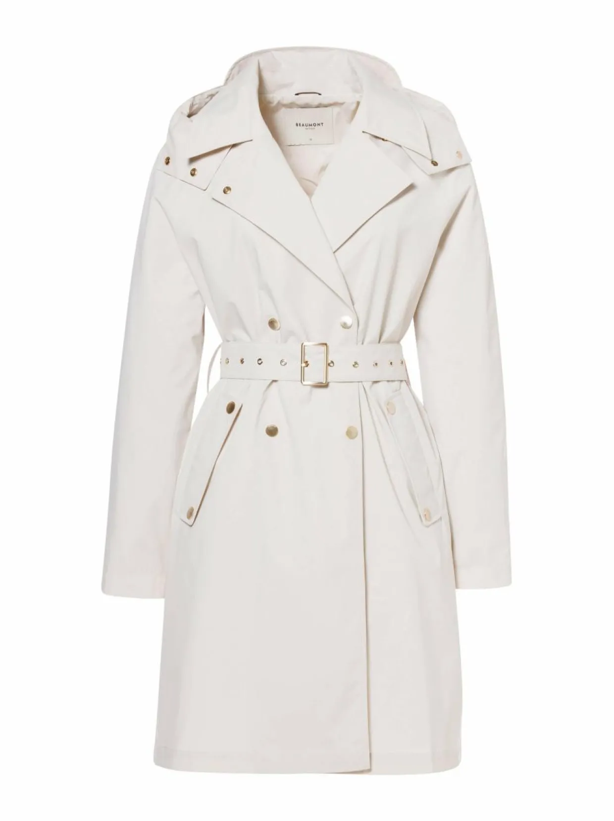 Beaumont -trenssi on tyylikäs ja käytännöllinen takkivalinta kaikenlaisiin tilaisuuksiin. Se on valmistettu kierrätetystä polyesteristä, mikä tekee siitä kestävän ja hieman vettähylkivän. Takissa on kaulukset, huppu ja kaksirivinen nappikiinnitys sekä säädettävä vyötärövyö. Se on istuvuudeltaan normaali ja se on helppo yhdistää moniin tyyleihin. Lisäksi, se sopii niin arkipukekeutumiseen kuin juhlavampii tilaisuuksiin, joka tekee siitä monikäyttöisen puolipitkän takin.