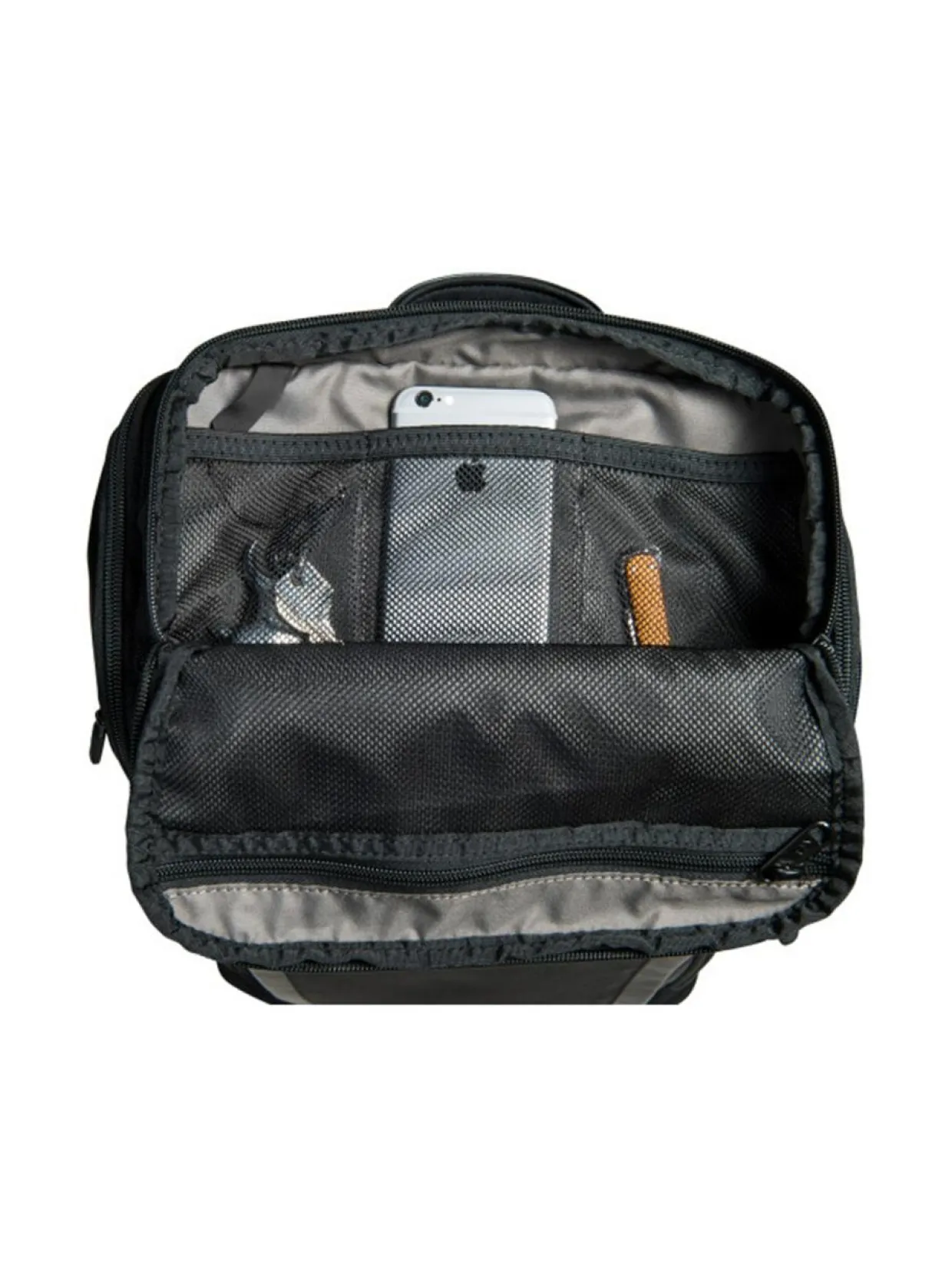 Sveitsin armeijan linkkuveitsen inspiroimana yhdistimme klassisen alppirepun moderneihin business-ratkaisuihin. Tämä minimalistinen ja tyylikäs reppu pitää sisällään monipuoliset organisointitilat, kuten esimerkiksi useita vetoketjutaskuja, kiinnityskoukkuja ja erillisen pehmustetun säilytystilan sekä 15 tuuman kannettavalle tietokoneelle että tabletille.