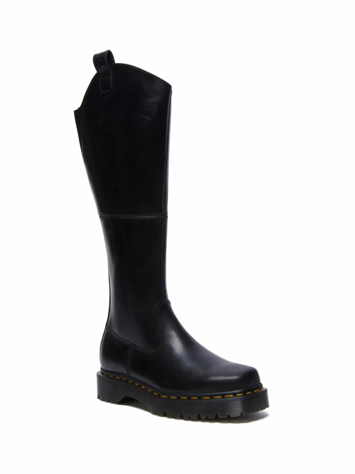 Dr. Martensin pitkävartisissa Amaayah-saappaissa on himmeästi kiiltävä nahkapinta. Vetoketju sivussa helpottaa saappaiden pukemista ja riisumista, ja tukevat pohjat takaavat mukavuuden koko päivän ajan. Saappaiden korkea varsi antaa niille elegantin ilmeen, joka sopii sekä arkeen että juhlaan. Ikoninen keltainen ommel tuo esiin brändin perinteisen tyylin.