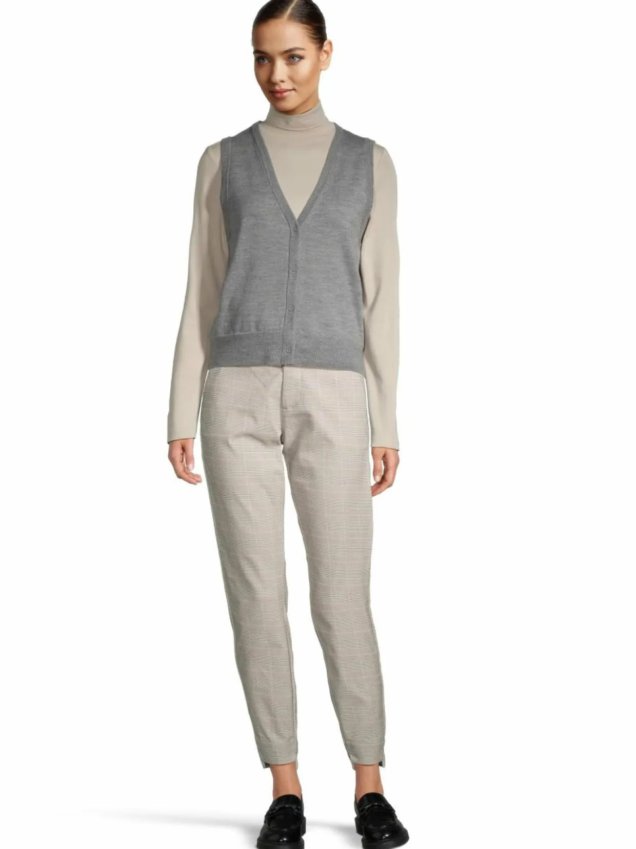 Mukava v-kauluksinen neuleliivi lisää lämmittävän ja tyylikkään kerroksen. ESSENTIALS by Stockmannin Amanda-neuleliivi on valmistettu pehmeästä merinovillasta. Merinovillan kuidut ovat huomattavasti ohuempia ja pidempiä verrattuna perinteiseen villaan. Kuidun pituus ja paksuus vaikuttaa sen ihotuntuun. Lyhyempi sekä paksumpi villakuitu tuntuu monesti iholla ikävän kutittavalta. Merinovillan kuitu onkin pitkä ja huomattavasti ohuempi ja täten pehmeämpi. Tämän ansiosta merinovilla sopii monesti myös sellaisille ihmisille, jotka välttelevät villoja kutittavan ominaisuuden takia.