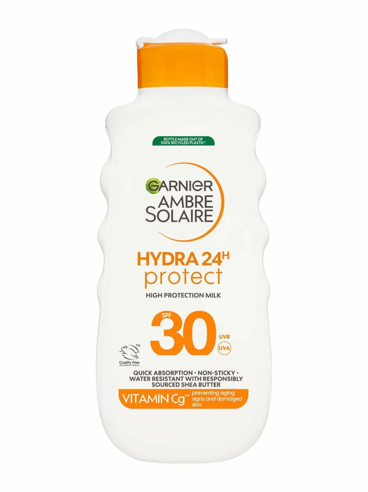 Garnier Ambre Solaire Hydra 24H -aurinkosuojaemulsio SPF30 suojaa tehokkaasti UVA- ja UVB-säteitä vastaan. Kosteuttava koostumus auttaa suojaamaan auringon kuivattavalta vaikutukselta ja samalla voit nauttia pehmeästä ja kosteutetusta ihosta. Suodattimemme auttavat suojaamaan ihoasi auringonsäteiden haitallisia vaikutuksia vastaan: UVA: Taistelee ennenaikaisia ikääntymisen merkkejä ja pitkäaikaisia auringonsäteiden aiheuttamia ihovaurioita vastaan. UVB: Suojaa auringon säteiden aiheuttamia välittömiä ihovauriota vastaan. Tuote imeytyy nopeasti ja ei jätä tahmaista tunnetta. Tuote on vedenkestävä. Pullo on valmistettu 100 % kierrätetystä muovista. Tuote on eläinkokeeton.