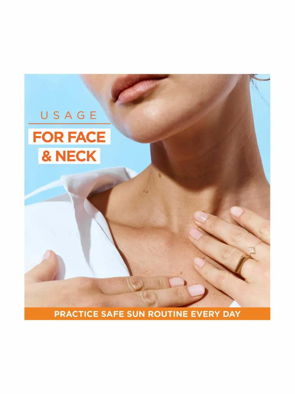 Garnier Ambre Solaire Super UV Anti-Dark Spot C-vitamiinia* sisältävä aurinkosuojavoide antaa päivittäisen UV-suojan kasvoille ja jättää samalla ihon sileäksi ja heleäksi. Koostumus suojaa ihoa UVB- ja UVA-säteitä ja pitkiä UVA-säteitä vastaan eikä jätä rasvaista tunnetta.