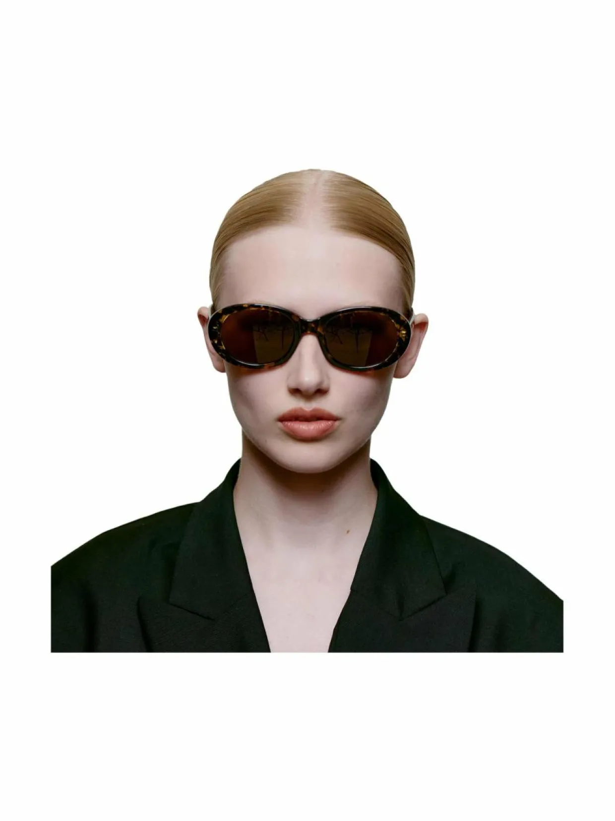 Anma lisää eleganssia asukokonaisuuteen. Nämä aurinkolasit ovat keskikokoisia ja niissä on pyöristetty runko.