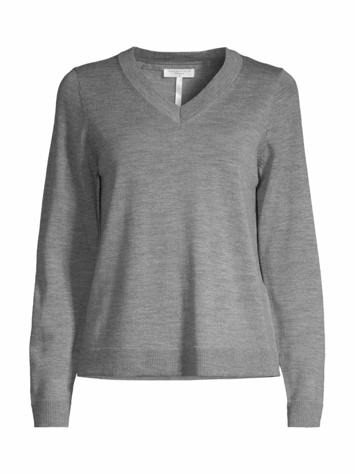 ESSENTIALS by Stockmann malliston pehmeä neulepusero on suunniteltu normaaliin istuvuuteen. Siinä on v-pääntie ja resorit helmassa sekä hihansuissa. Materiaalina on käytetty miellyttävän tuntuista merinovillaa. Merinovillan kuidut ovat huomattavasti ohuempia ja pidempiä verrattuna perinteiseen villaan. Kuidun pituus ja paksuus vaikuttaa sen ihotuntuun. Lyhyempi sekä paksumpi villakuitu tuntuu monesti iholla ikävän kutittavalta. Merinovillan kuitu onkin pitkä ja huomattavasti ohuempi ja täten pehmeämpi. Tämän ansiosta merinovilla sopii monesti myös sellaisille ihmisille, jotka välttelevät villoja kutittavan ominaisuuden takia.