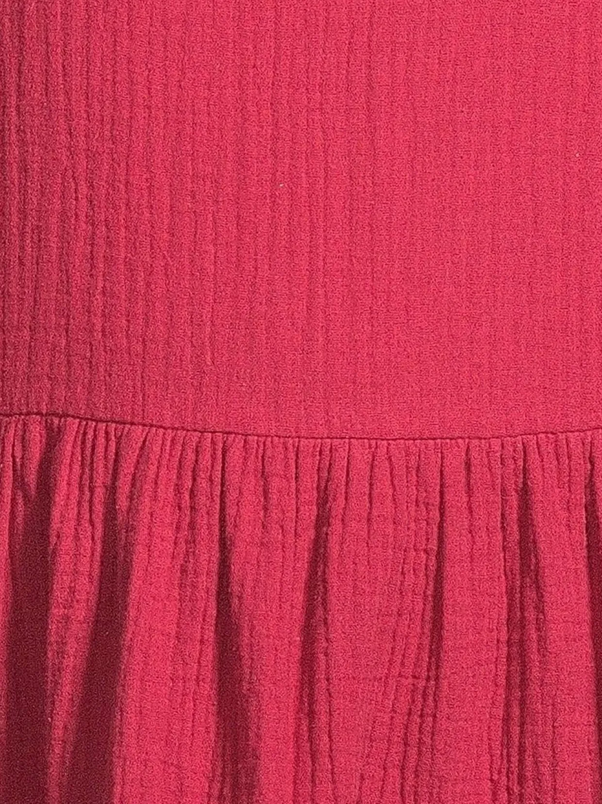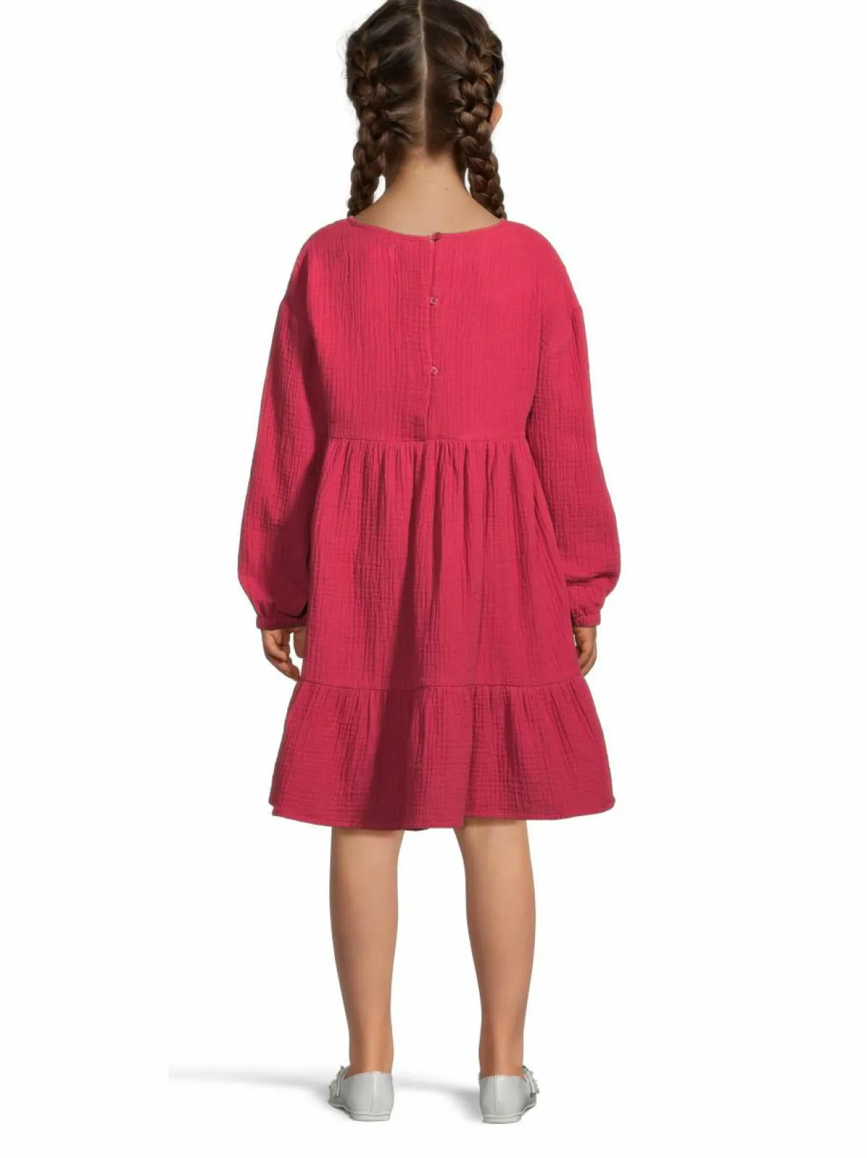 Bogin Anniina-mekko on valmistettu pehmeästä ja kevyestä musliinikankaasta. Se sopii ihanteellisesti kevät- ja kesäkäyttöön. Puuvillainen musliinimekko laskeutuu rennosti vartalolle ja on mukava päällä. Yksityiskohtana pyöreä pääntie, pitkät hihat ja kauniisti kerrostettu helma.