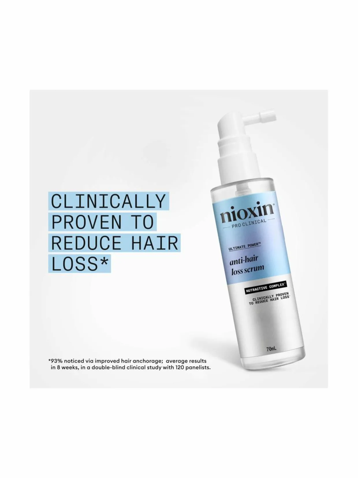 Nioxin Anti-Hairloss on ohentuville hiuksille tarkoitettu hiuksiin jätettävä seerumi, joka tekee hiuksista paksummat. Seerumin koostumus sisältää kliinisesti toimivaksi todistettua sandaloria, lauriinihappoa ja kofeiinia, jotka yhdessä parantavat hiusten kiinnittymistä, vähentävät hiustenlähtöä ja tekevät hiuksista näkyvästi paksummat ja vahvemmat jo ensimmäisestä käyttökerrasta lähtien. Seerumi sisältää innovatiivisia ja ravitsevia ainesosia, jotka auttavat tukemaan hiusten tervettä kasvua ja ehkäisemään hiusten ohenemisen yleisiä syitä. Kliinisesti ja dermatologisesti testattu. Saat parhaan lopputuloksen käyttämällä yhdessä Anti-Hairloss-shampoon ja Night Denisty Rescuen kanssa.