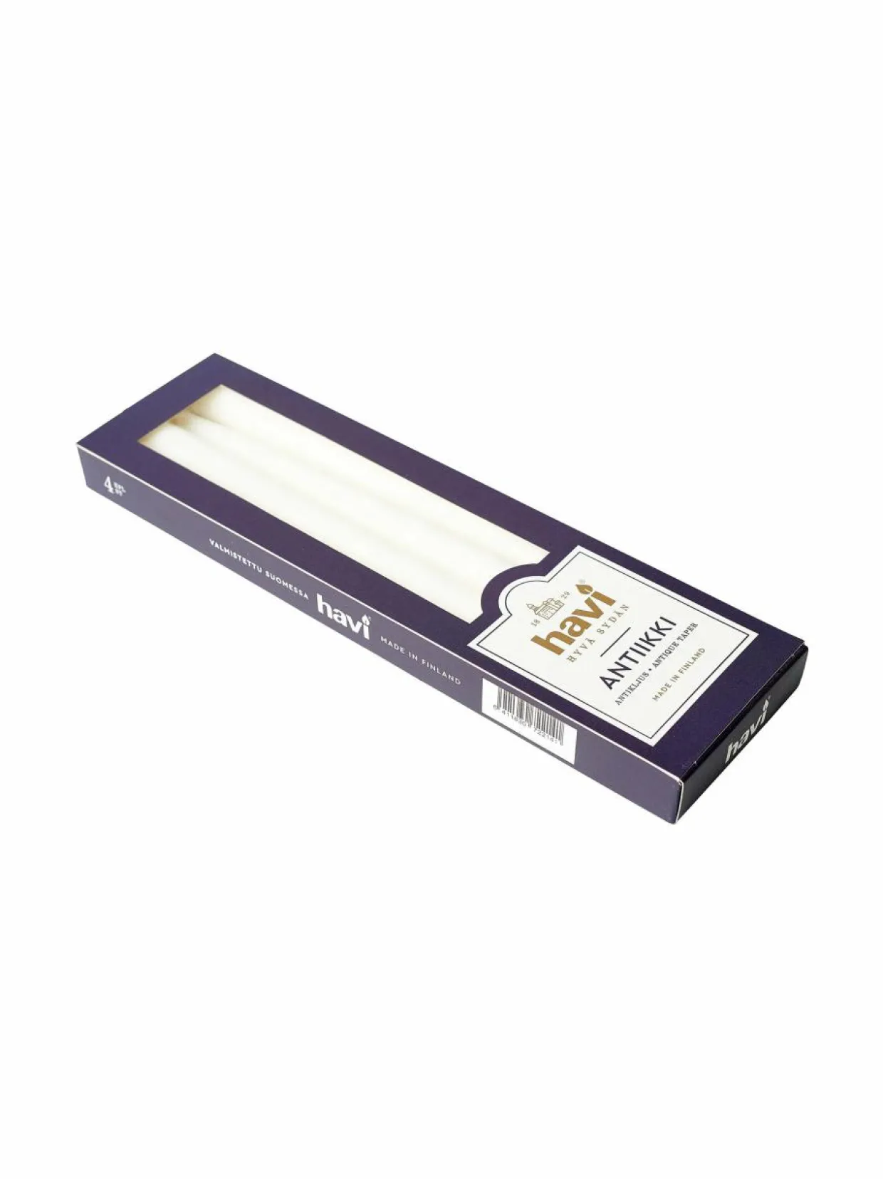 Havi-kynttilät valmistetaan Suomessa.Tuotenumero117438024 ValmistusmaaSuomi VäriVALKOINEN Koko280 mm AvainsanatHavi, antiikkikynttilä, kynttilä, steariinikynttilä,
