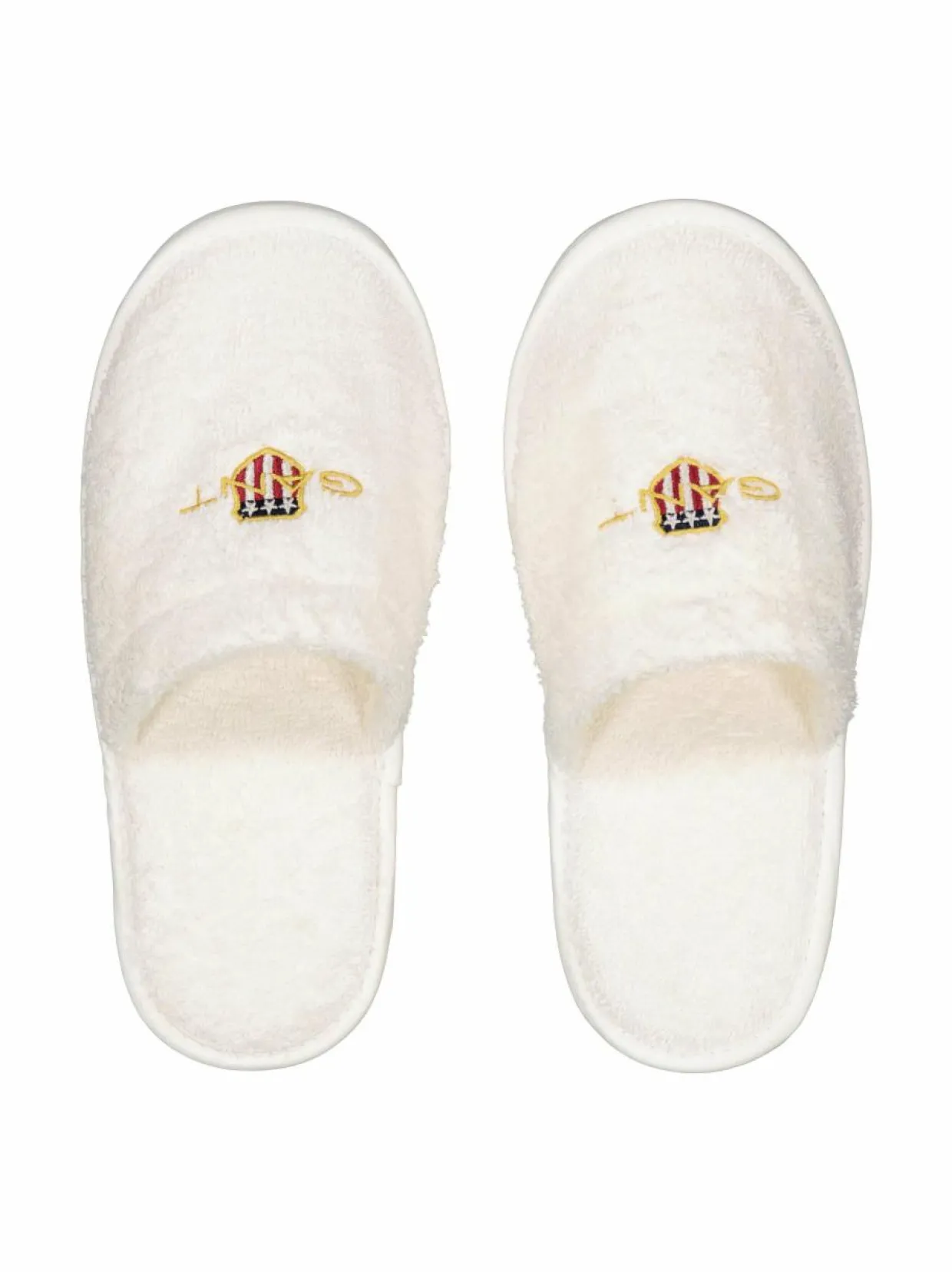 Gantin Archive Shield -tohveleita koristavat klassiset logobrodeeraukset. Päällinen ja sisäpinta ovat 100 % luomupuuvillaista froteeta. Muovinen ulkopohja on taipuisa.