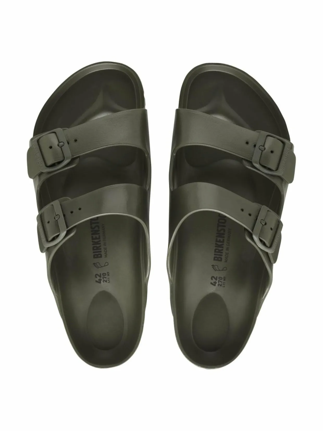 BIRKENSTOCK Arizona -klassikkosandaalit ovat nyt saatavissa myös erittäin kevyestä ja helppohoitoisesta EVA-materiaalista valmistettuna. Tyylikäs ulkonäkö on ennallaan kahdesta soljella suljettavasta remmistä anatomisesti muotoiltuun pohjaan, vain materiaali on muuttunut. Laadukas, tuoksuton EVA kestää vettä ja on myös pestävissä, mikä tekee sandaaleista erittäin käytännölliset.