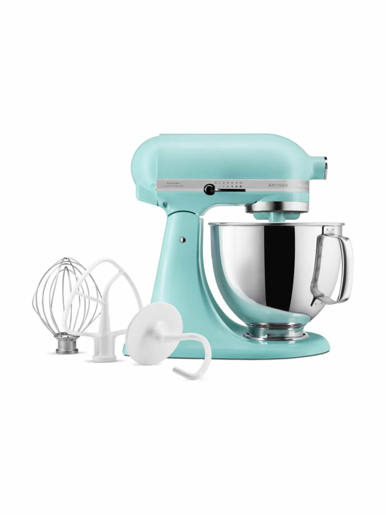 Retrohenkinen KitchenAid Artisan -yleiskone on vankkarakenteinen ja kestävä keittiötyökalu. 300 W suoravetomoottori jauhaa lihat, vaivaa taikinat sekä vaahdottaa voit ja valkuaiset. Laitteen mitat ovat 36 x 24 x 37 cm ja paino 10,4 kg. Taikinan maksimikoko on 1 kg jauhoja. Mukana tulee ruostumattomasta teräksestä valmistettu 4,8 litran kahvallinen kulho, vispilä, sekoitin ja taikinakoukku.