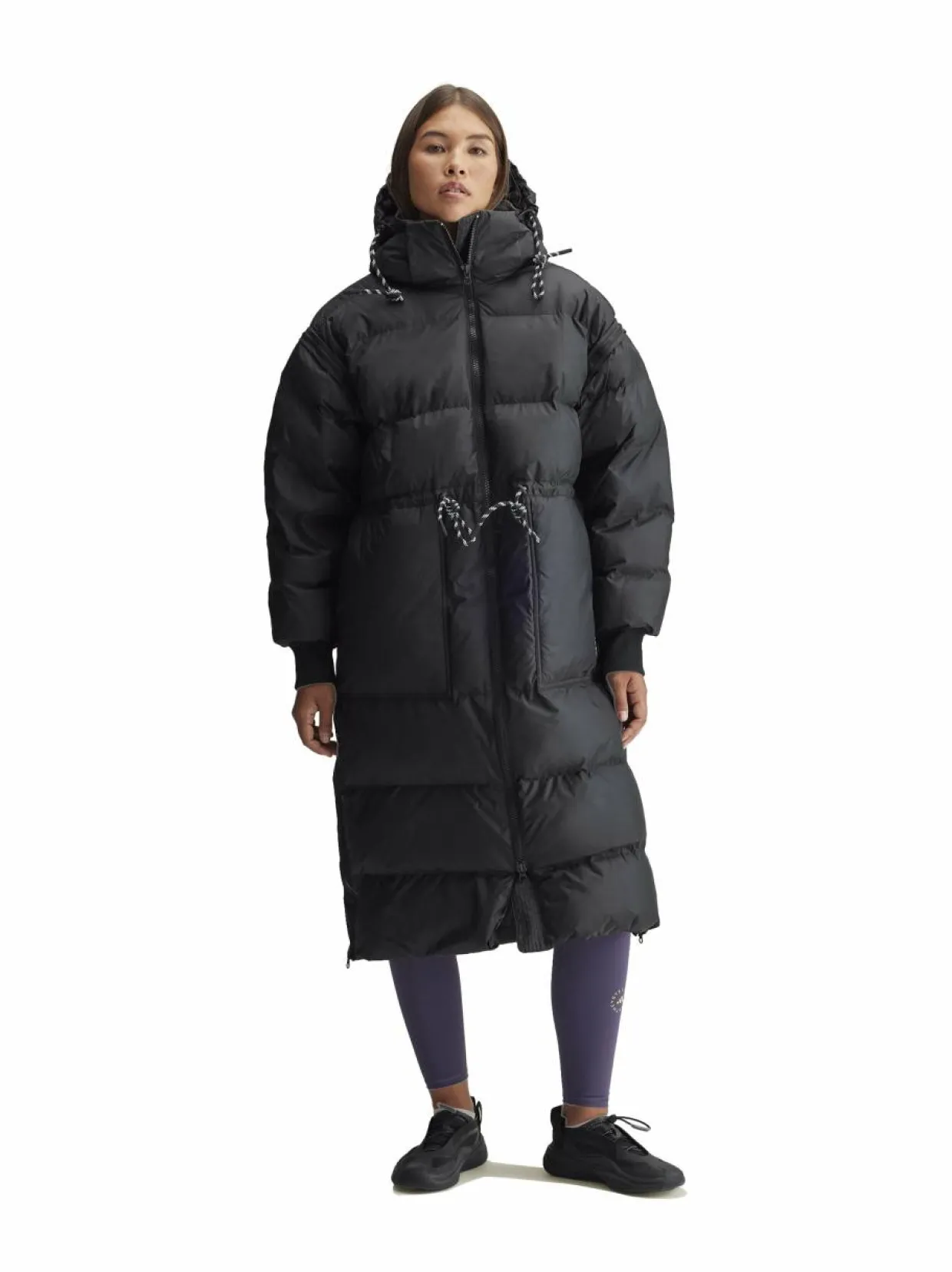 adidas by Stella McCartneyn pitkä ja lämmin toppatakki sopii täydellisesti kylmiin päiviin. Takki on valmistettu kierrätetystä polyesteristä. Takissa on säädettävä huppu, kätevä kaksisuuntainen vetoketju edessä ja kaksi sivutaskua. Vyötärölinjassa on säätömahdollisuus. Pitkät vetoketjulliset halkiot helman sivuilla. Suunniteltu rentoon istuvuuteen.