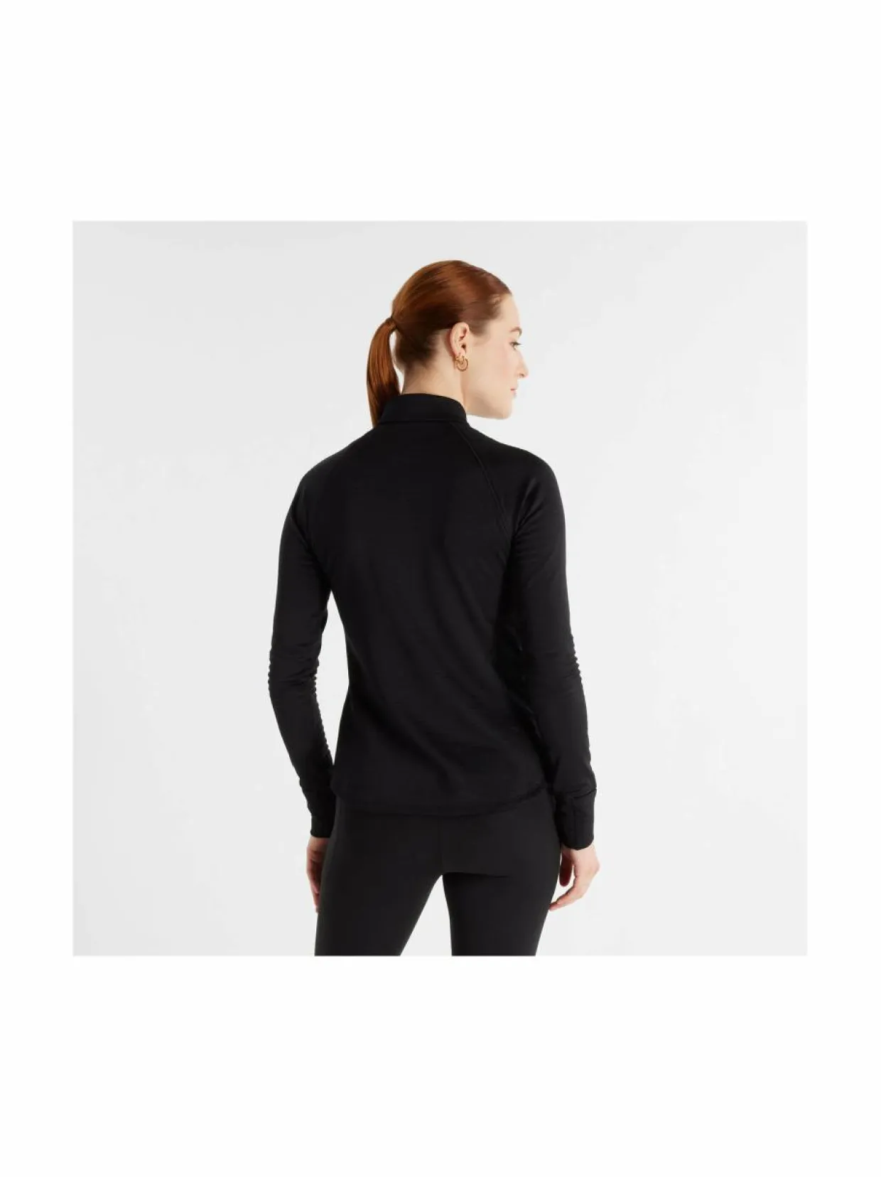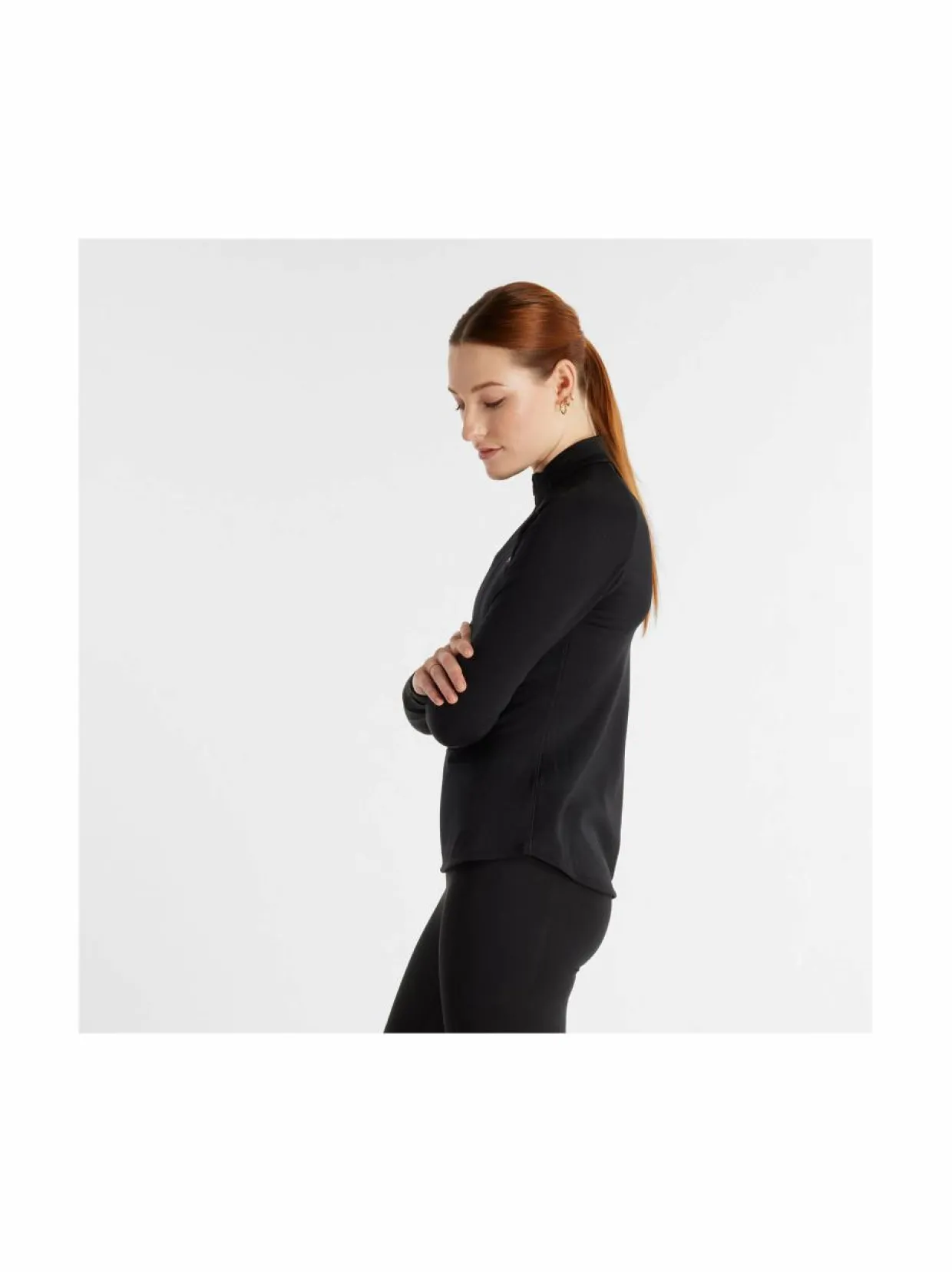 Naisten pitkähihainen paita, jossa on korkea kaulus ja puolivetoketju. Lämmin, harjattu fleecevuori auttaa sinua pysymään lämpimänä ja siirtää hyvin kosteutta pois iholta. Urheilullisen leikkauksen ansiosta paita istuu napakasti päälle. Paidassa on pitkät raglan-hihat peukalorei’illä ja kämmeniä lämmittävillä hihansuilla. Oikeassa kyljessä on pieni vetoketjullinen tasku, jossa kannat esimerkiksi kotiavaimesi turvallisesti mukana. Treenipaita on valmistettu kierrätysmateriaaleista.