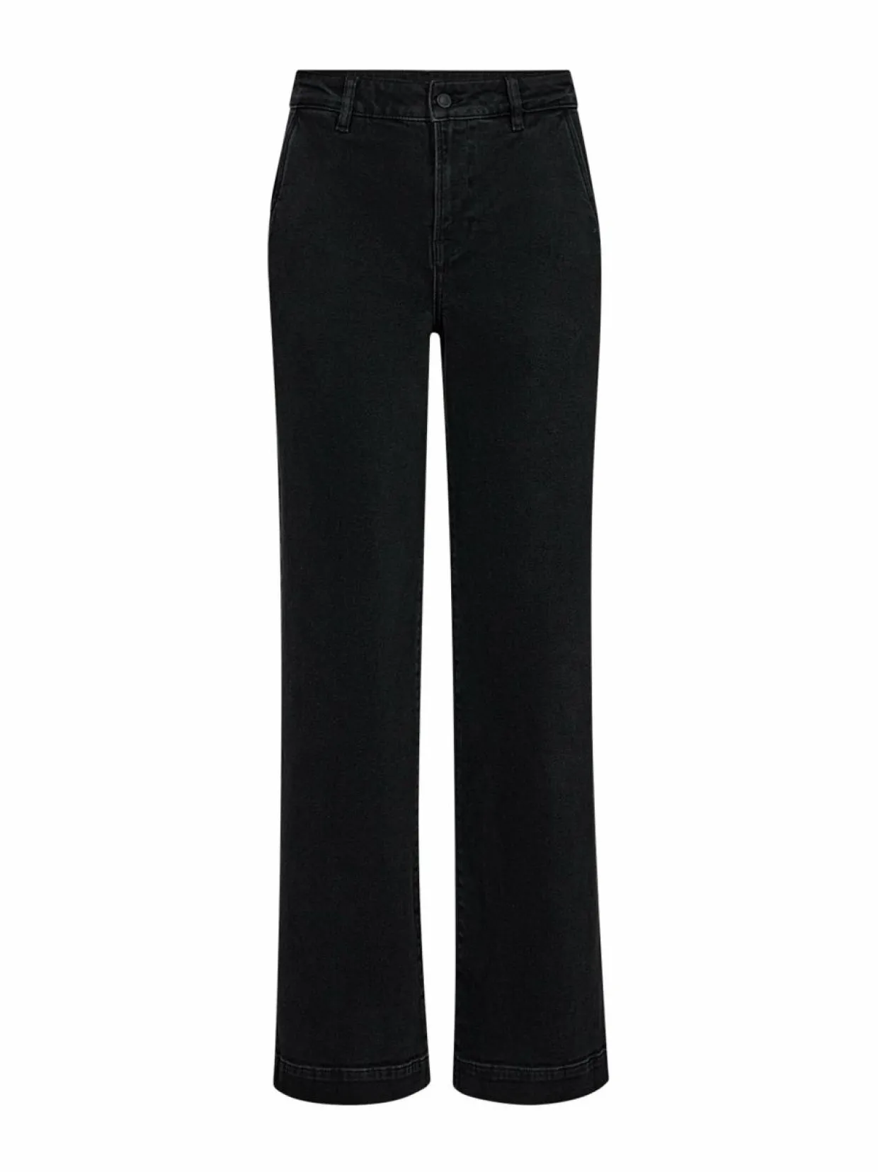 Tyylikkäät korkeavyötäröiset farkut. Normaali istuvuus. Yksityiskohtana suorat ja leveät lahkeet, sivutaskut sekä läpälliset takataskut. Materiaaliin on lisätty myös pikkasen joustoa käyttömukavuuden takaamiseksi.