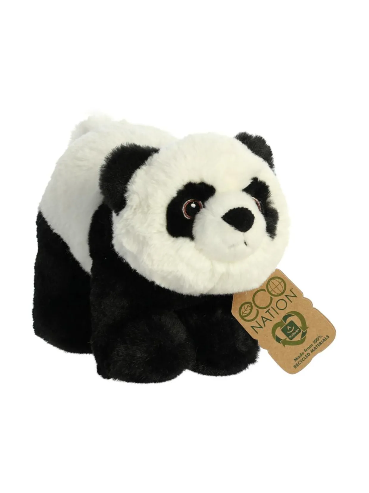 Esittelyssä Aurora Worldin upouusi mallisto – Eco Nation, täysin ekologisesti kestävä pehmolelusarja, joka on valmistettu 100 % kierrätetyistä materiaaleista. Me haluamme myötävaikuttaa vihreämmän Maan luomiseen, ja Eco Nationin avulla voit tuoda kotiisi erityisen eläinystävän, joka tuntuu äärimmäisen pehmeältä ja laadukkaalta ja on valmistettu kierrätetyistä muovipulloista! Pehmolelu panda on mustavalkoinen ja sillä on ihastuttavat kirjaillut silmät, ja sen kaulassa roikkuu Eco Nationin pullon muotoinen lappu, joka on myös valmistettu 100 % kierrätetyistä materiaaleista.